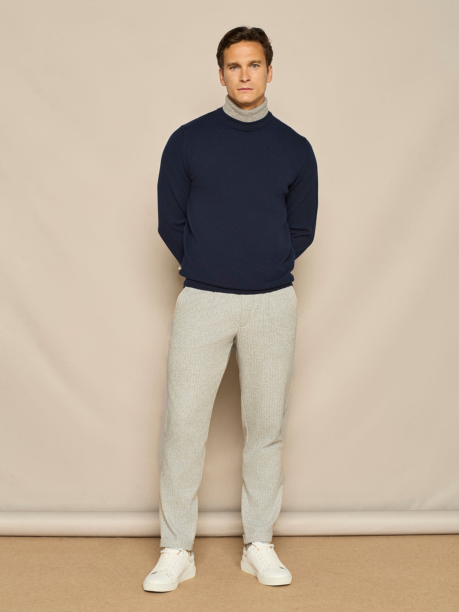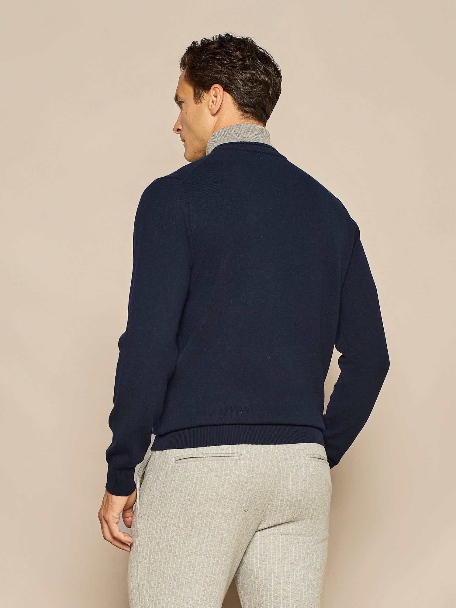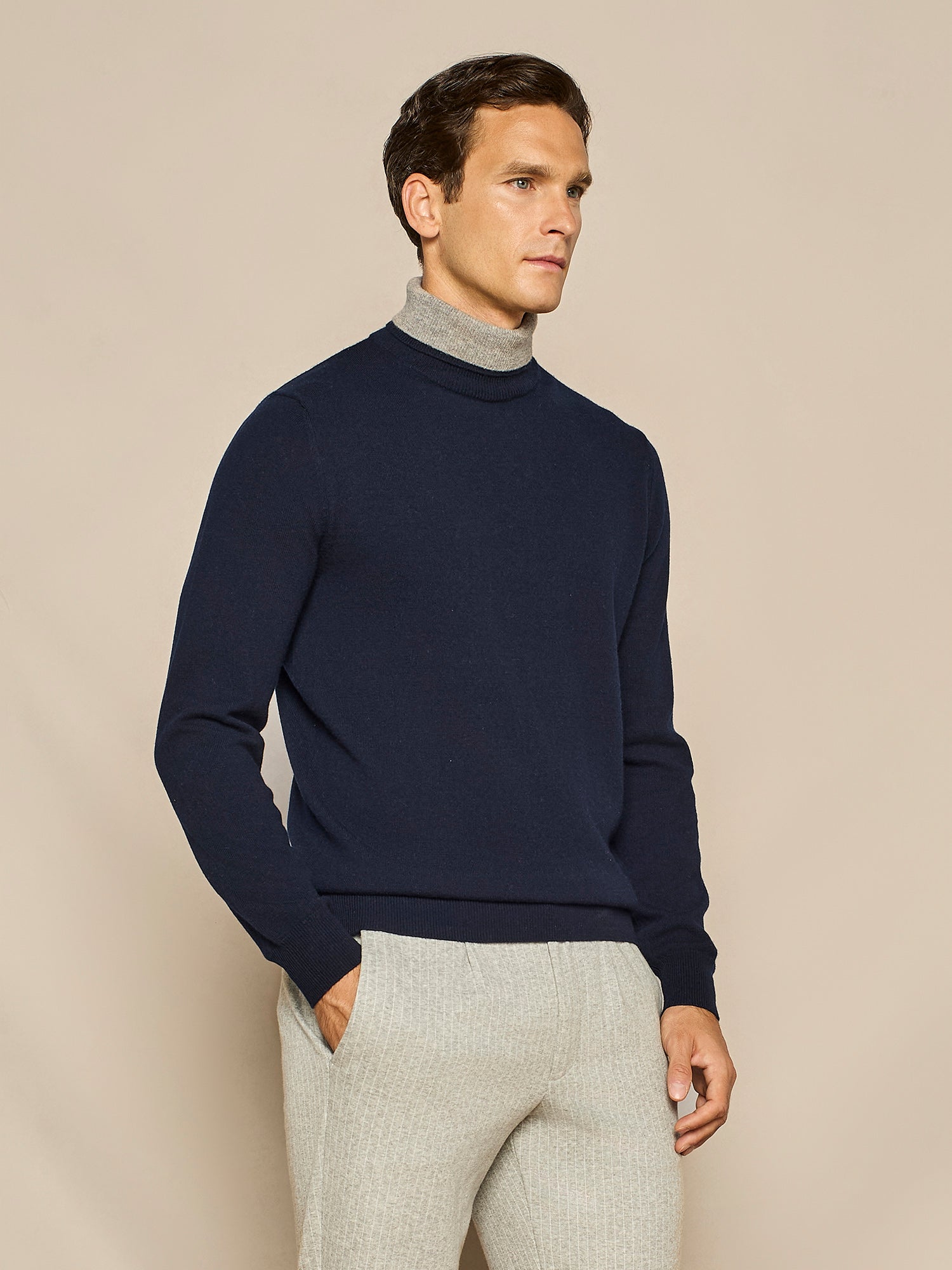 BLUE CASHMERE BLEND DOUBLE COLLAR TURTLENECK