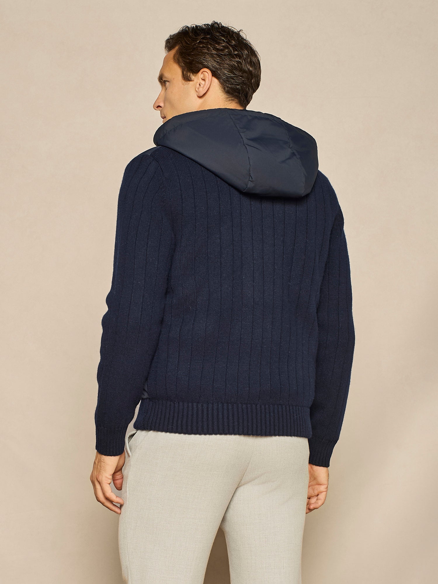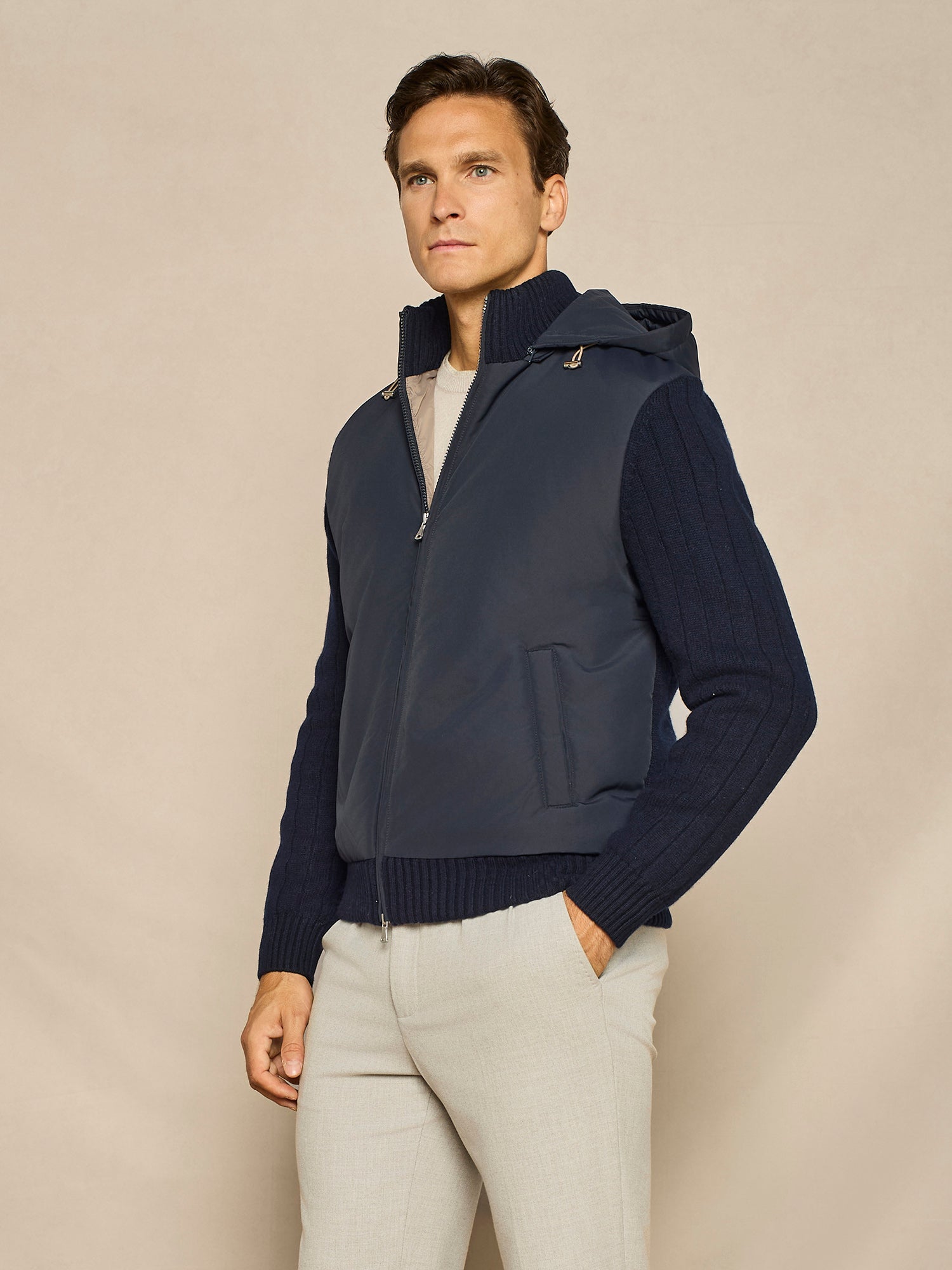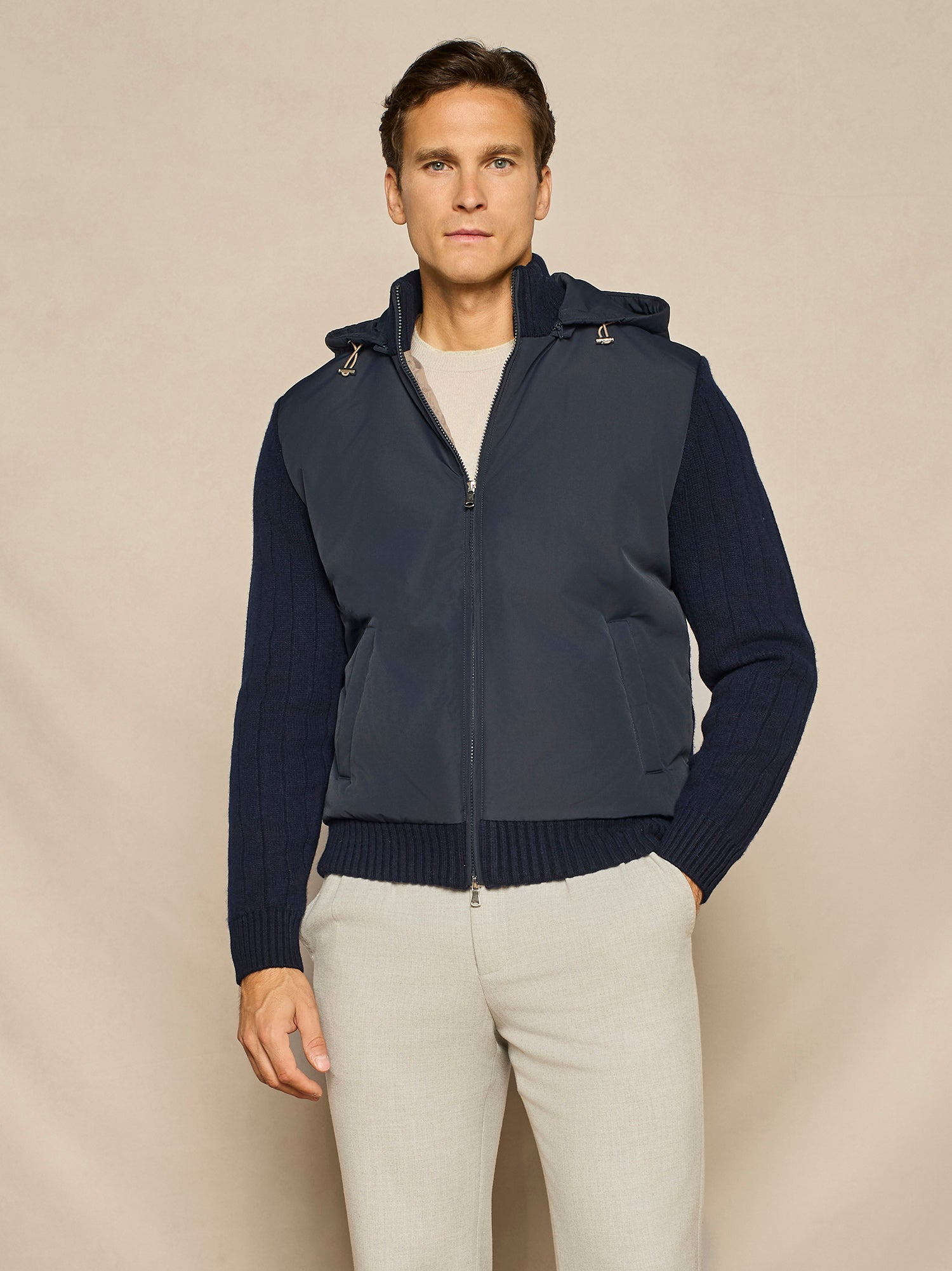 BLUE NYLON AND KNIT PADDED OVERJACKET