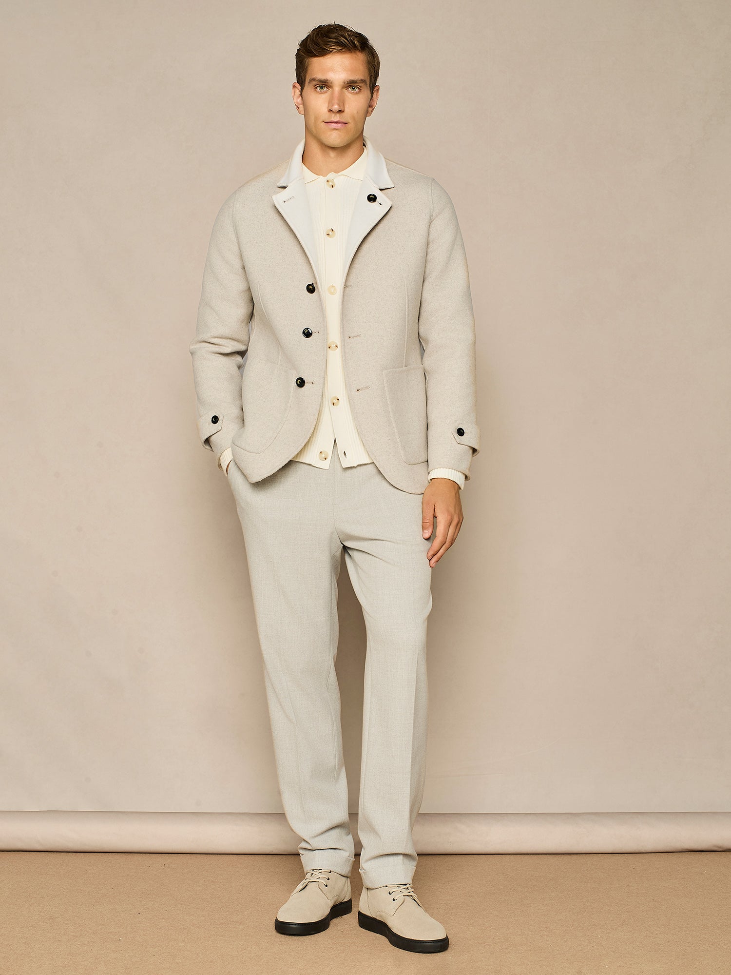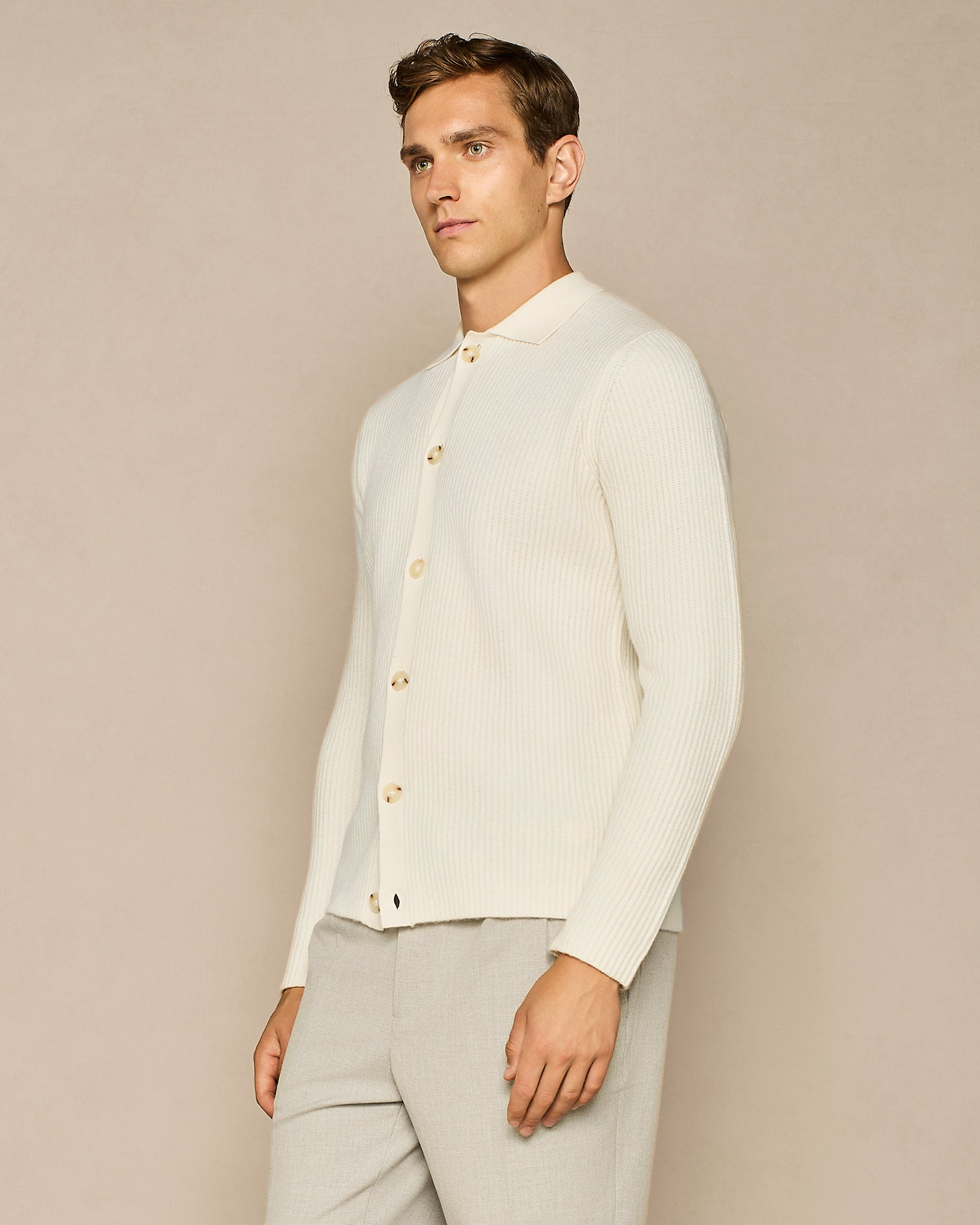 OFF WHITE WOOL BLEND FULL CARDIGAN STITCHING SHIRT