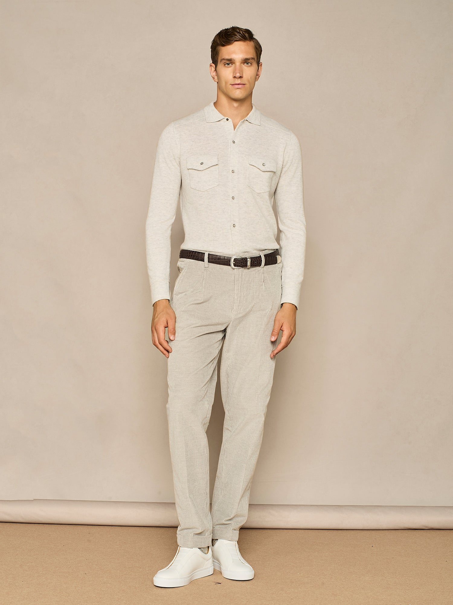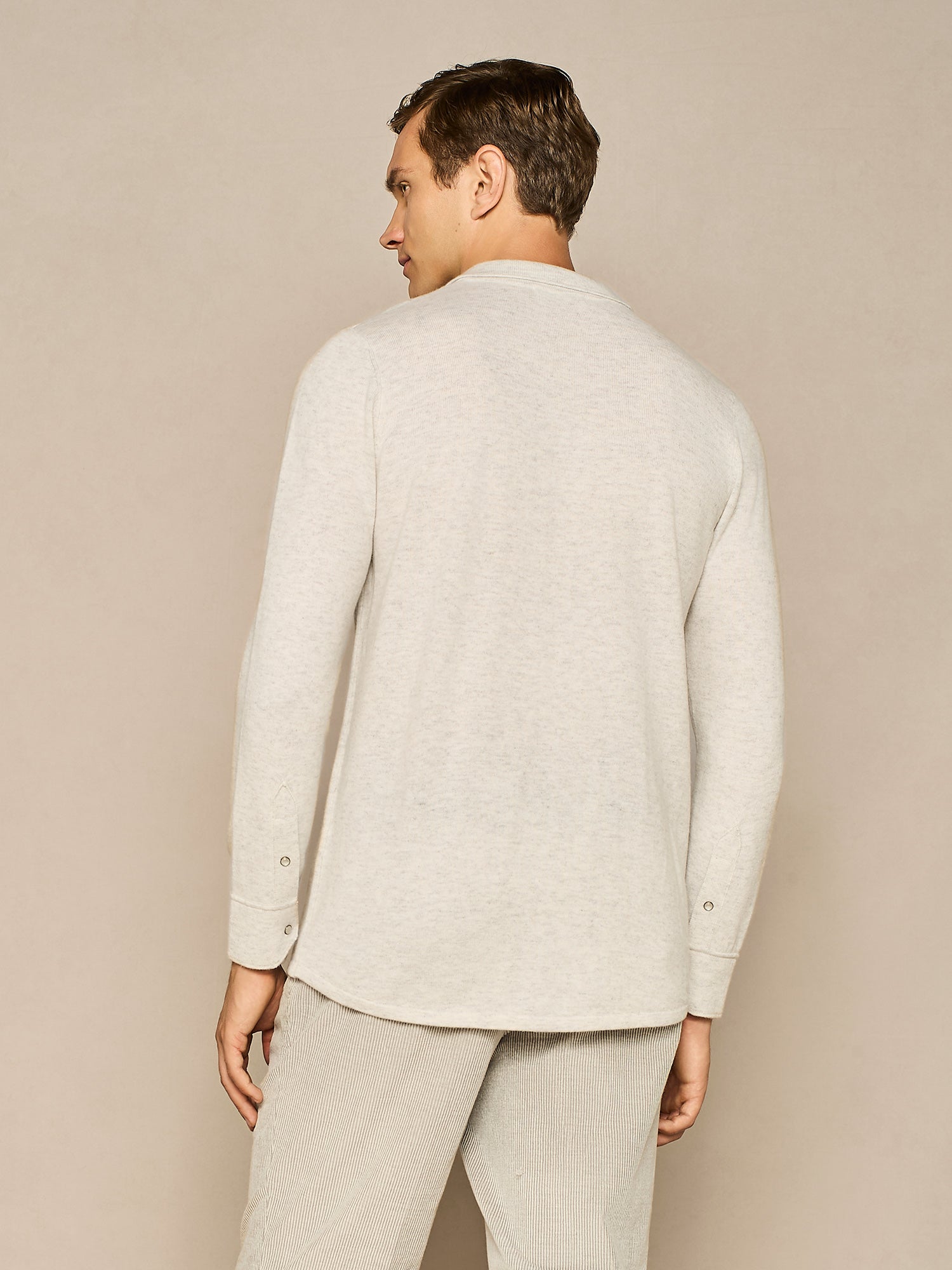 LIGHT GREY MELANGE KNITTED TEXAN SHIRT IN WOOL BLEND YARN
