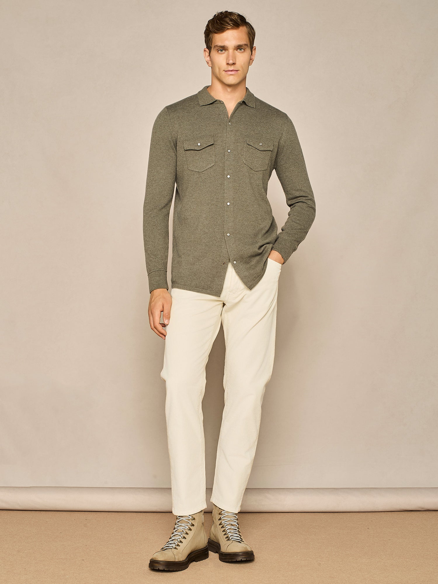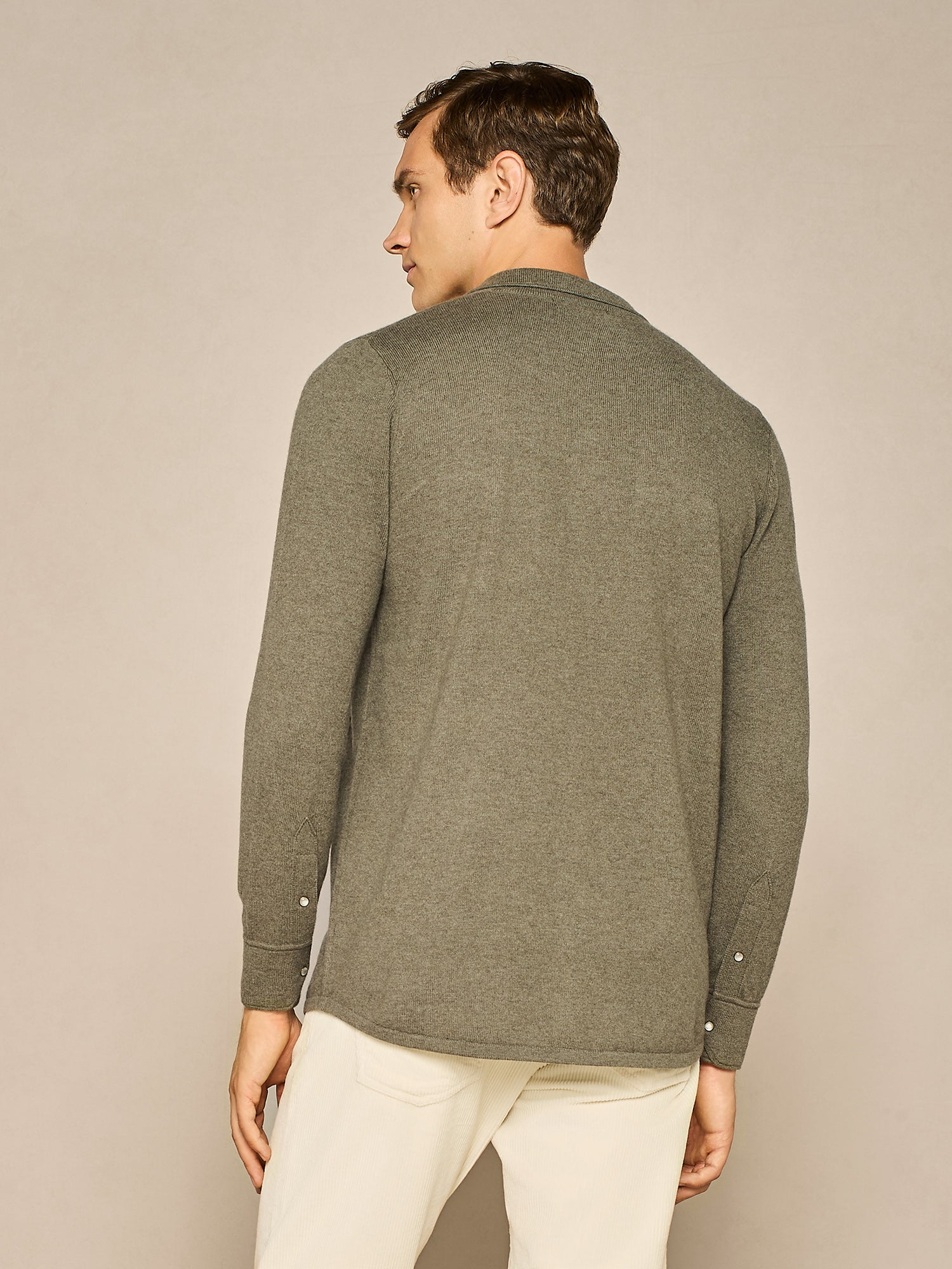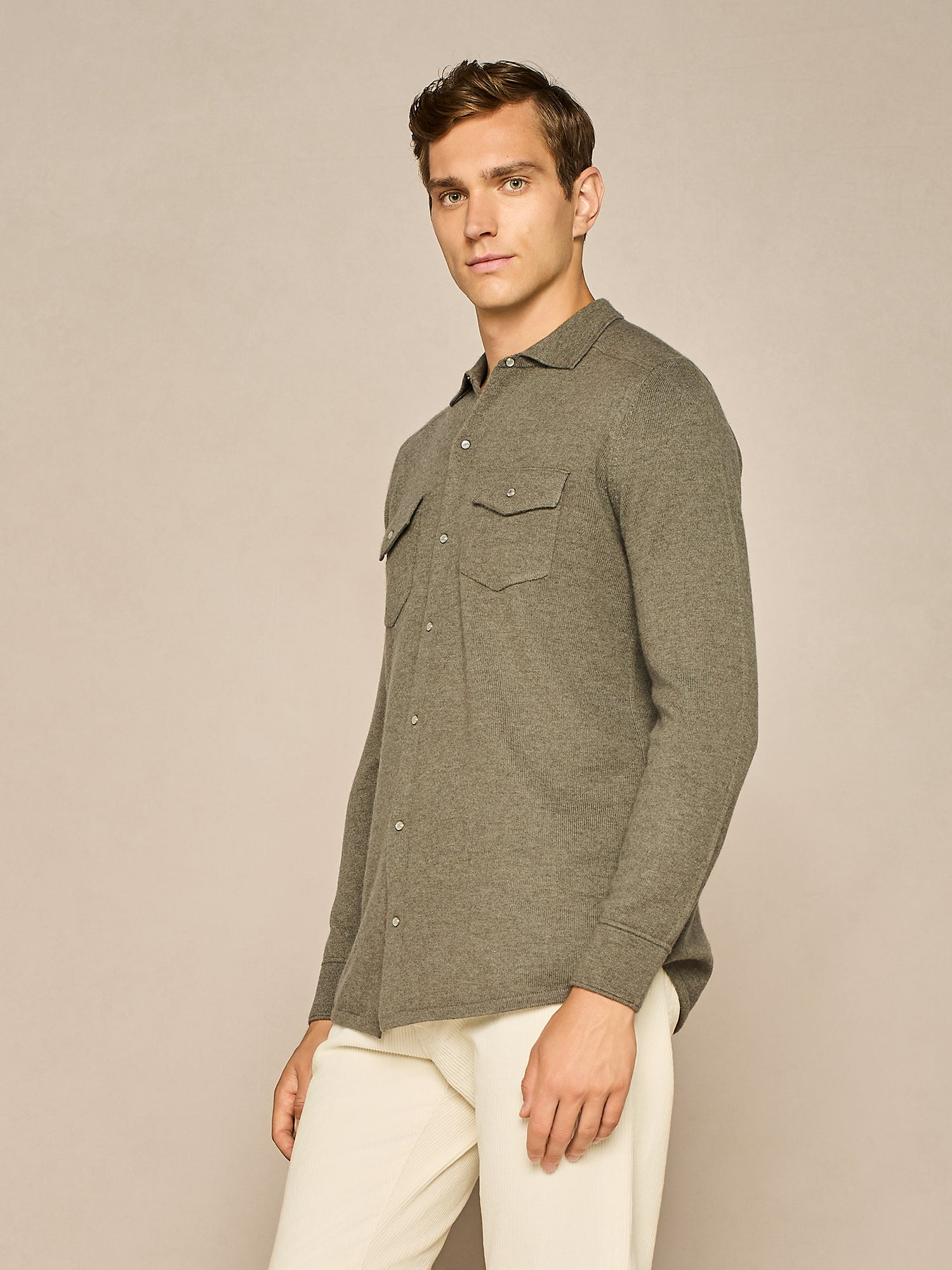 OLIVE GREEN KNITTED TEXAN SHIRT IN WOOL BLEND YARN