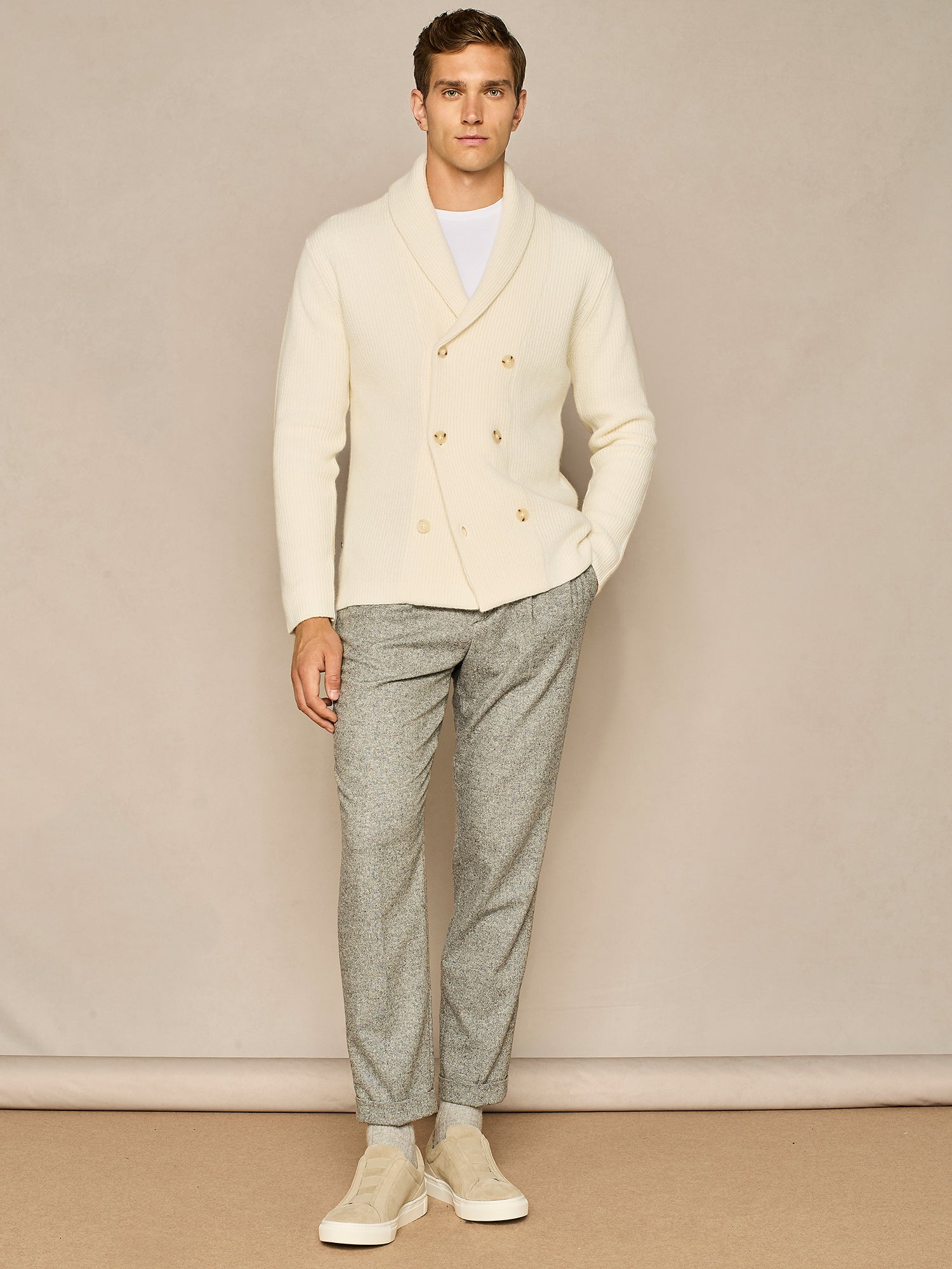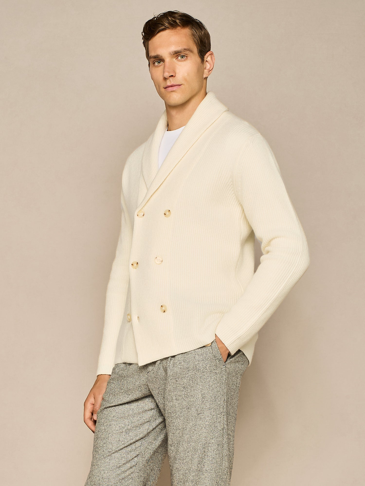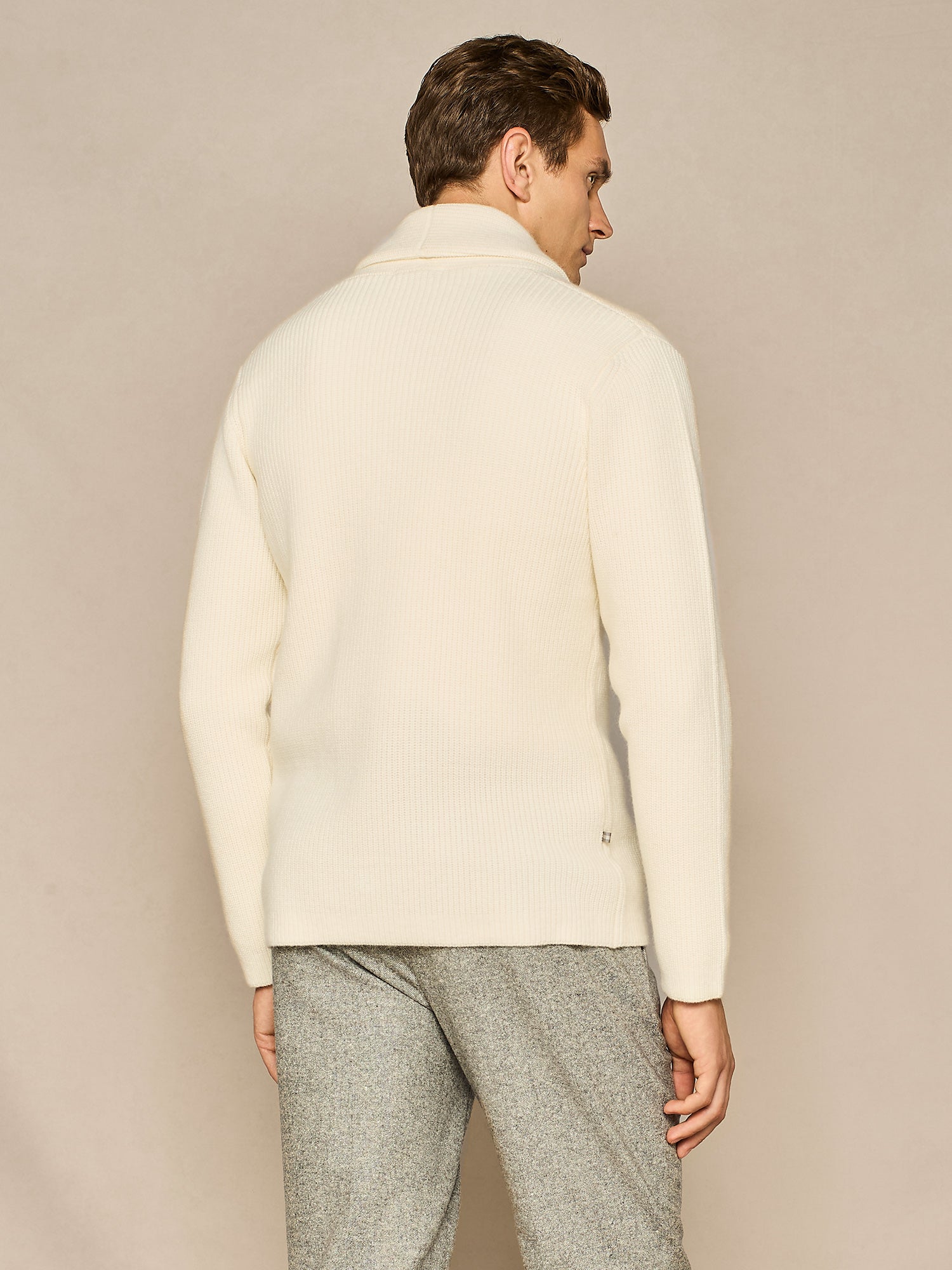 OFF WHITE FULL CARDIGAN STITCHING SHAWL COLLAR SWEATER