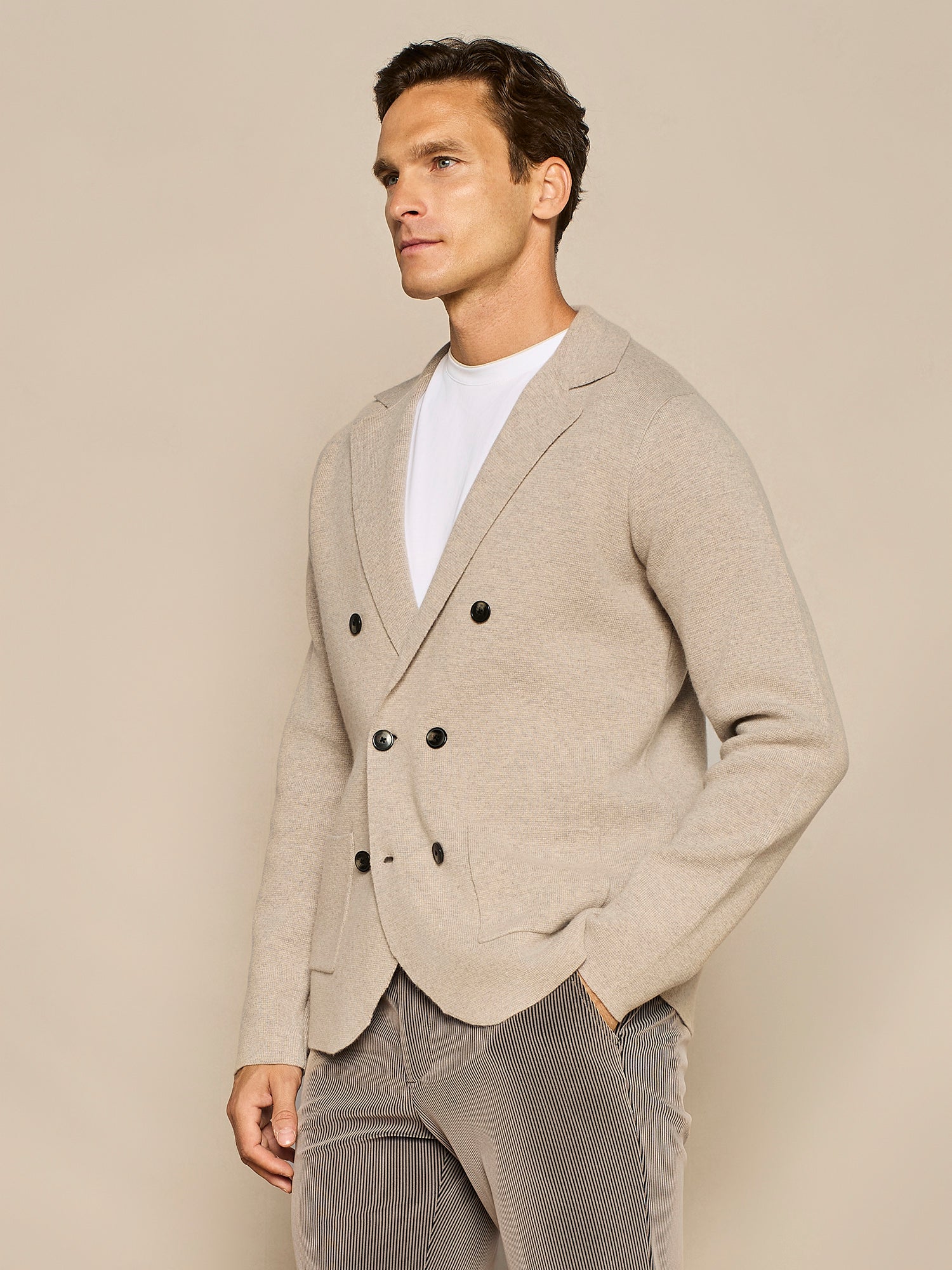 TAUPE DOUBLE BREASTED MILANO KNITTING JACKET