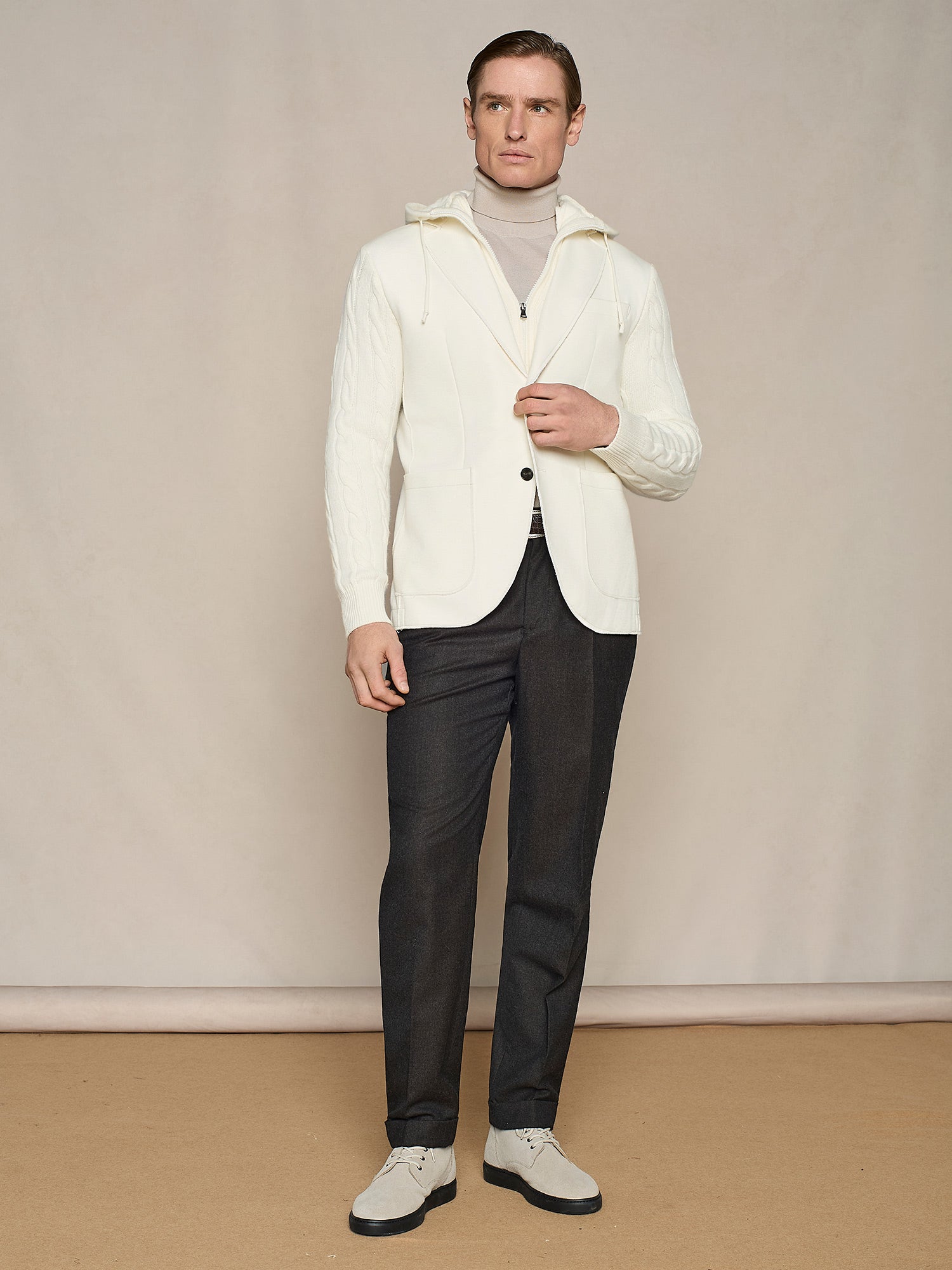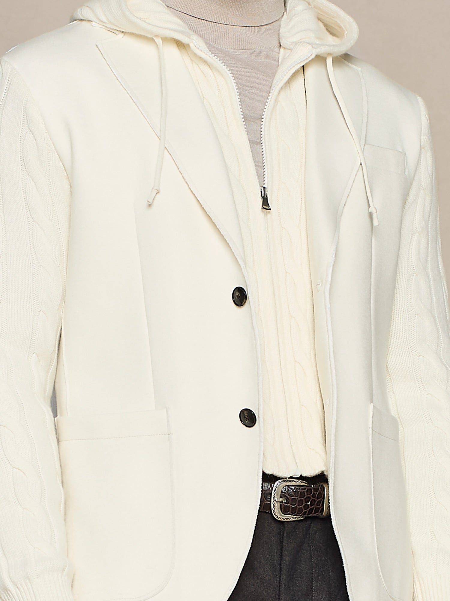 OFF WHITE JERSEY JACKET WITH KNITTED BIB AND SLEEVES