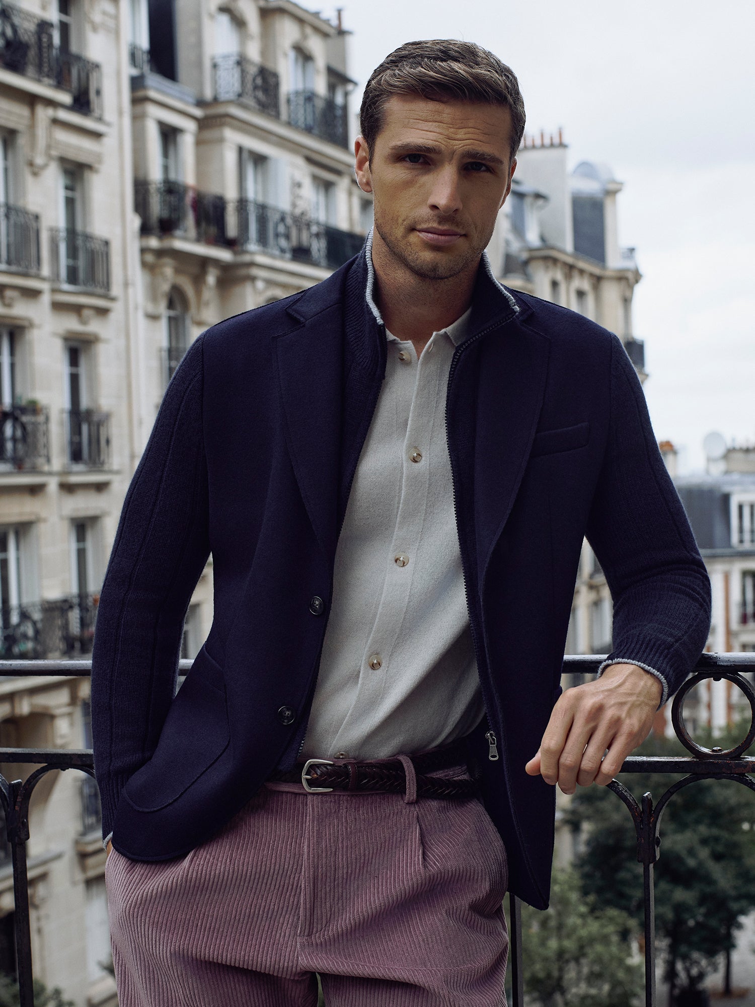 BLUE JERSEY JACKET WITH KNITTED BIB AND SLEEVES