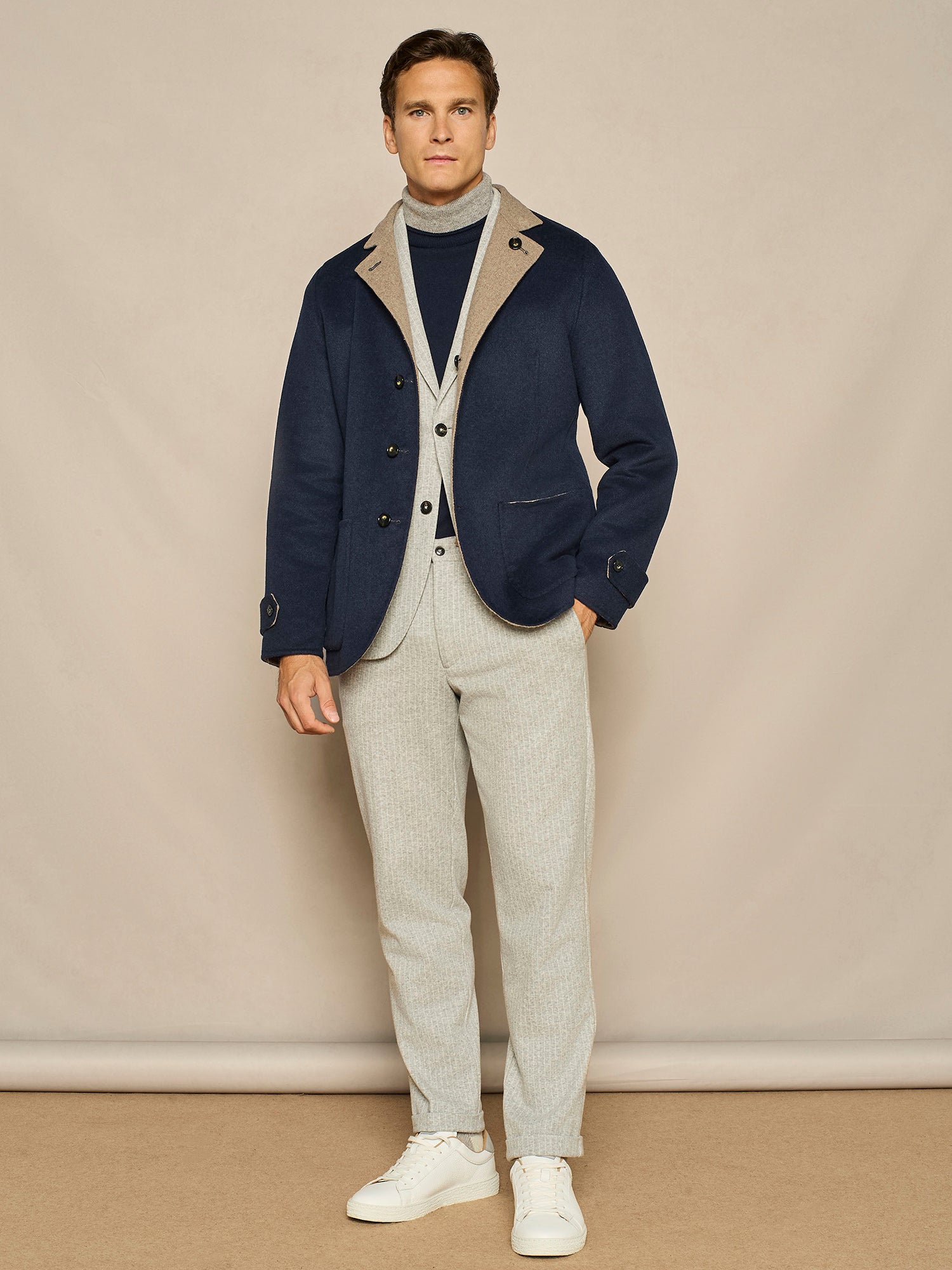BLUE HERRINGBONE REVERSIBLE OVERJACKET