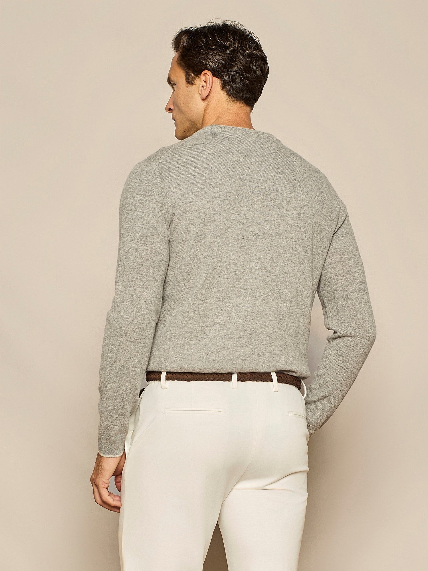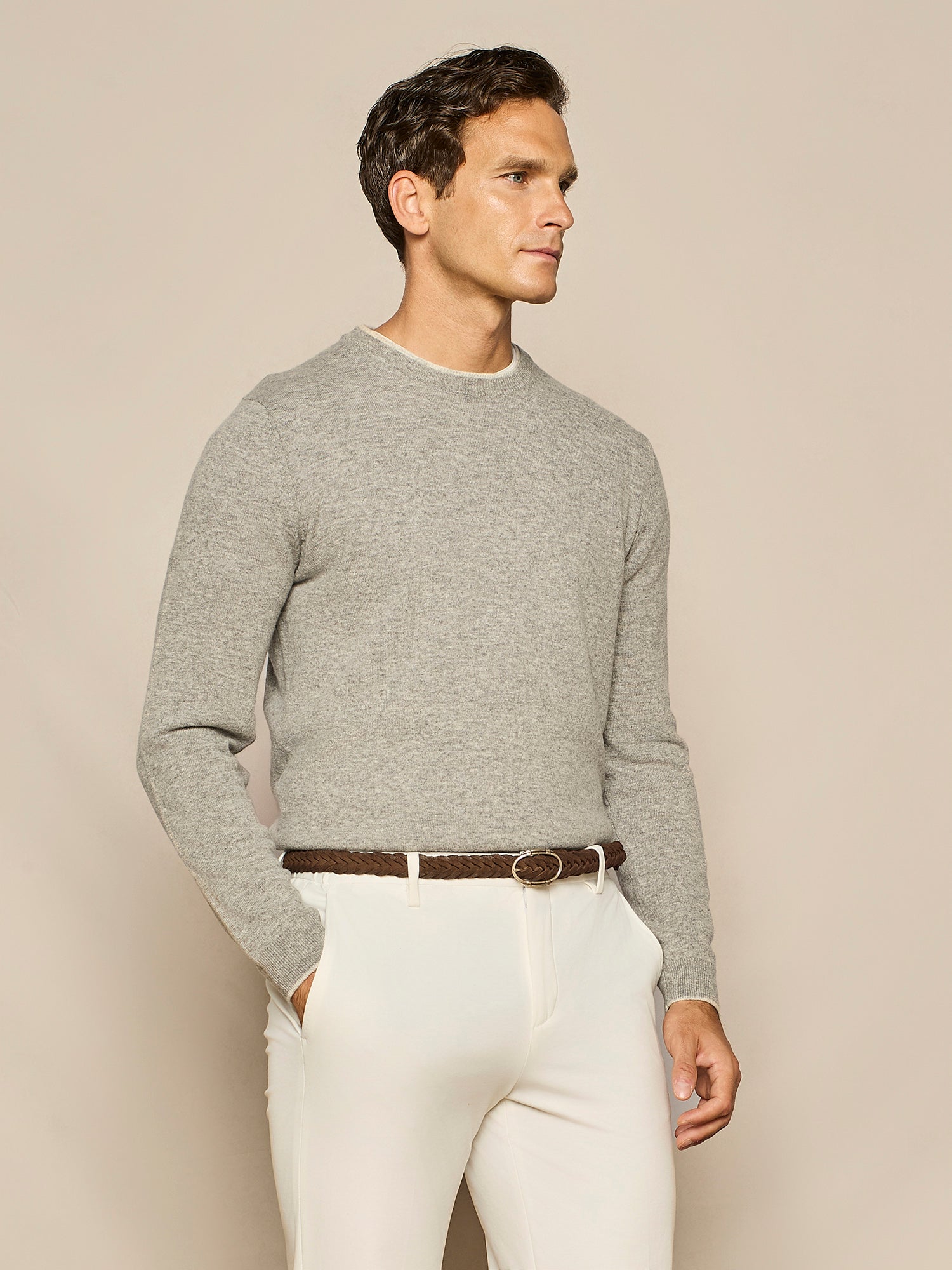 GREY MELANGE CASHMERE BLEND ROUND NECK SWEATER