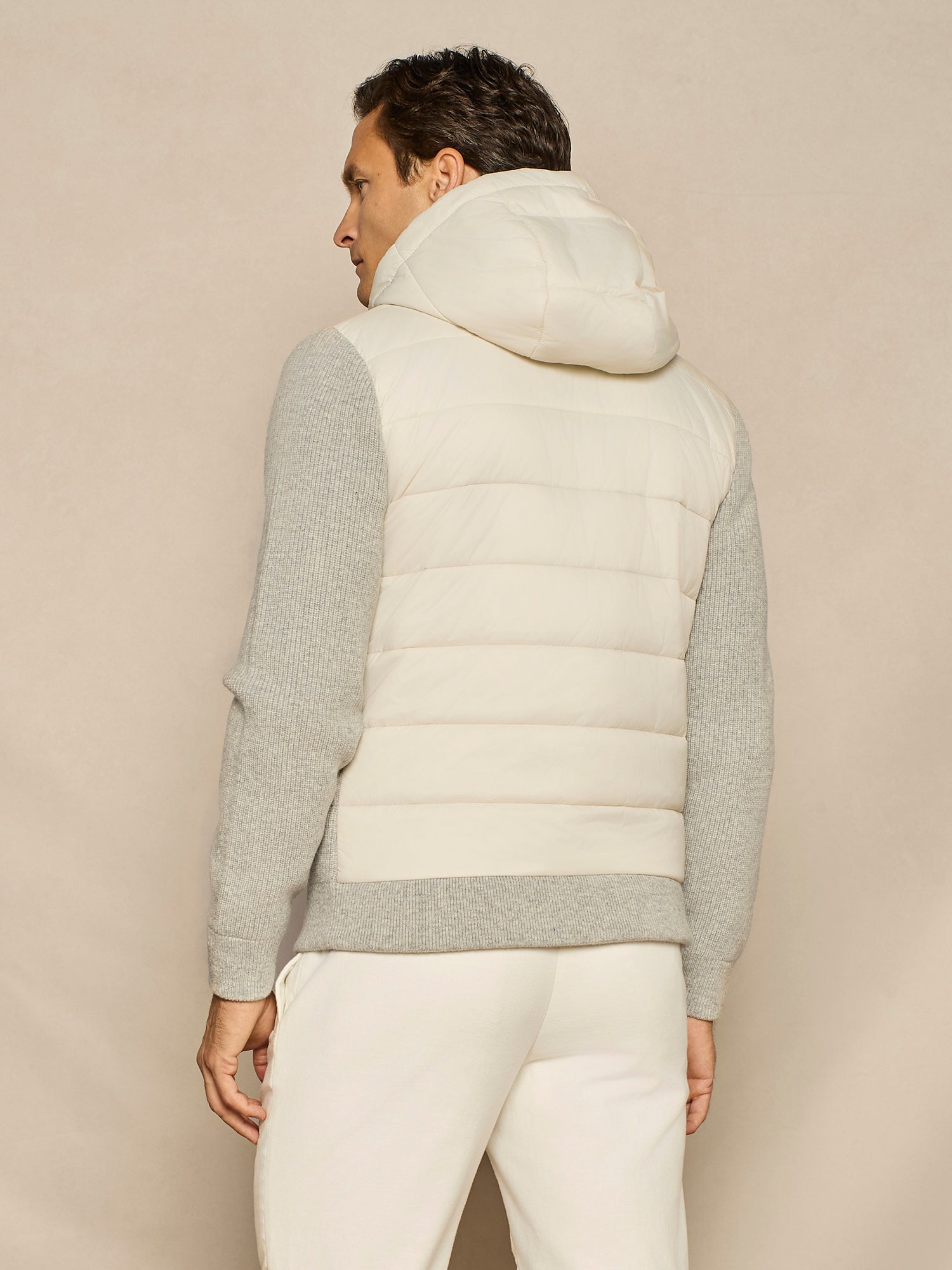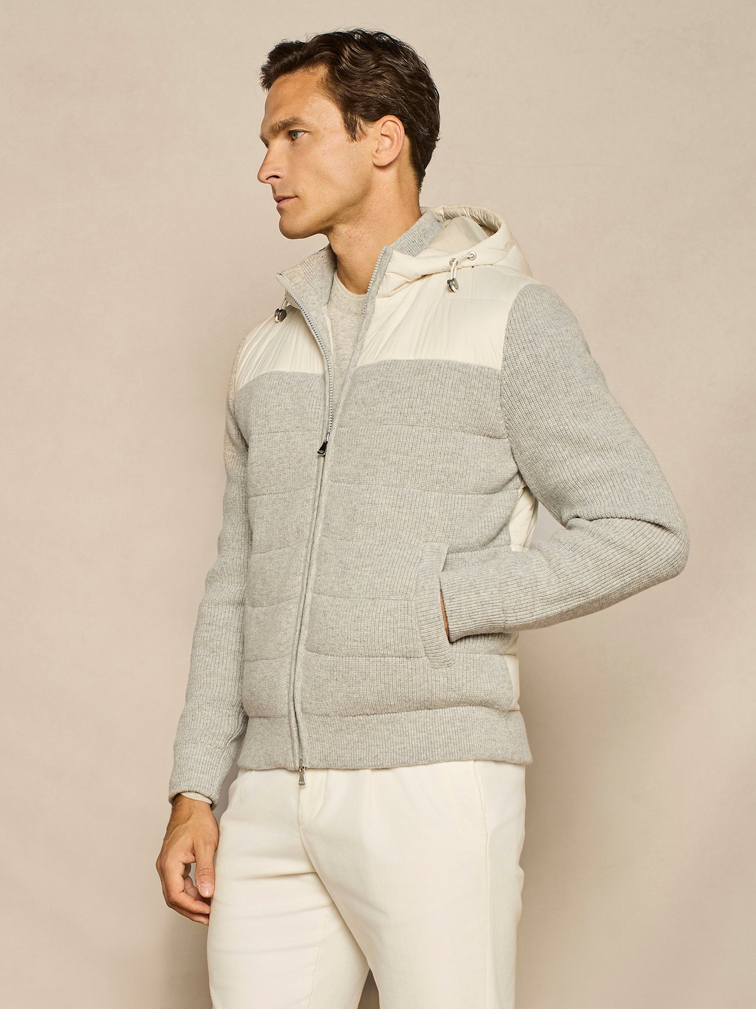 LIGHT GREY KNIT AND NYLON PADDED OVERJACKET