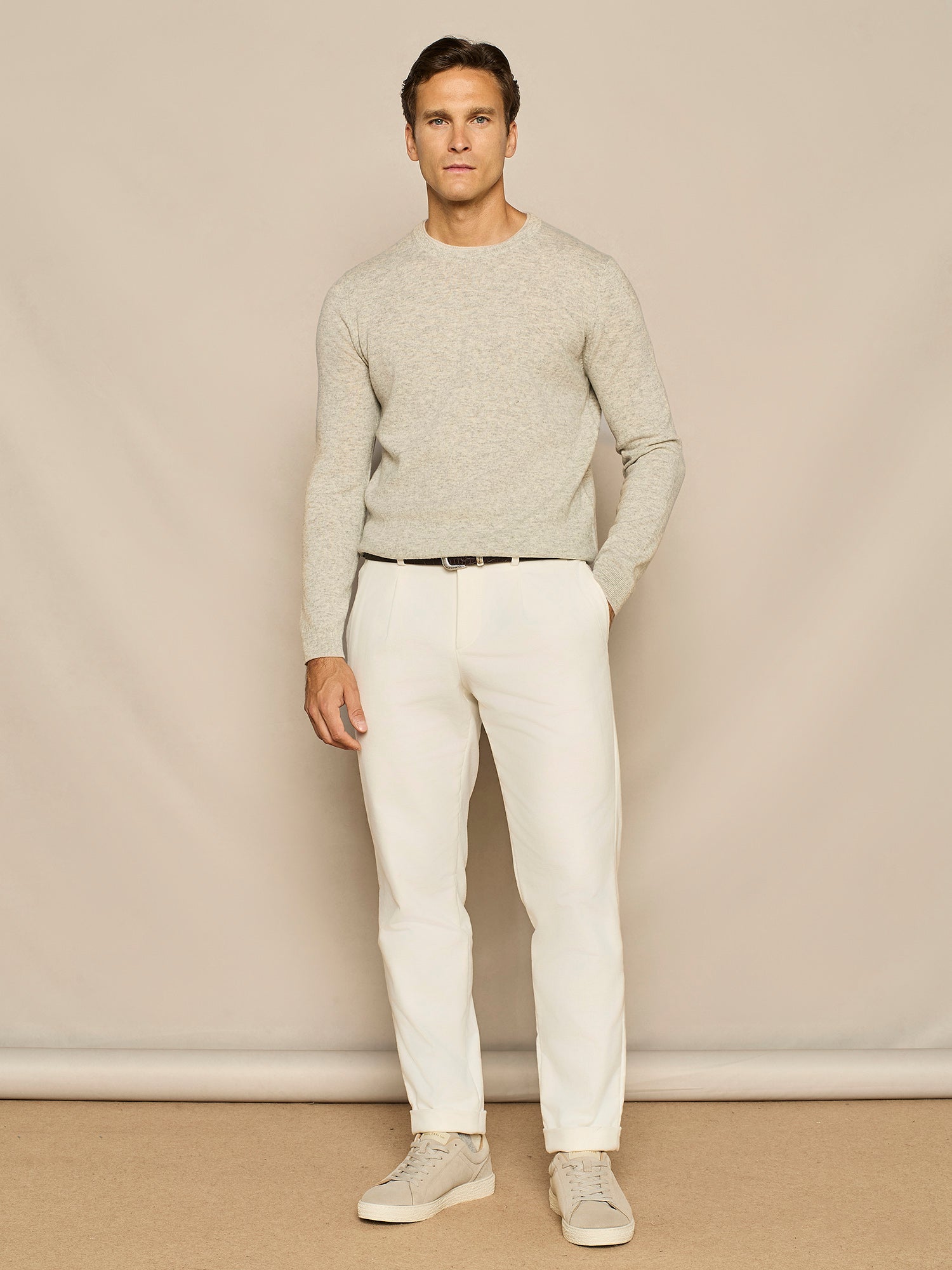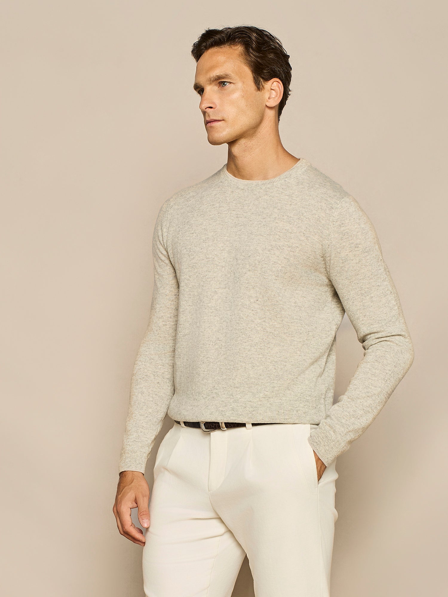 LIGHT GREY MELANGE CASHMERE BLEND ROUND NECK SWEATER
