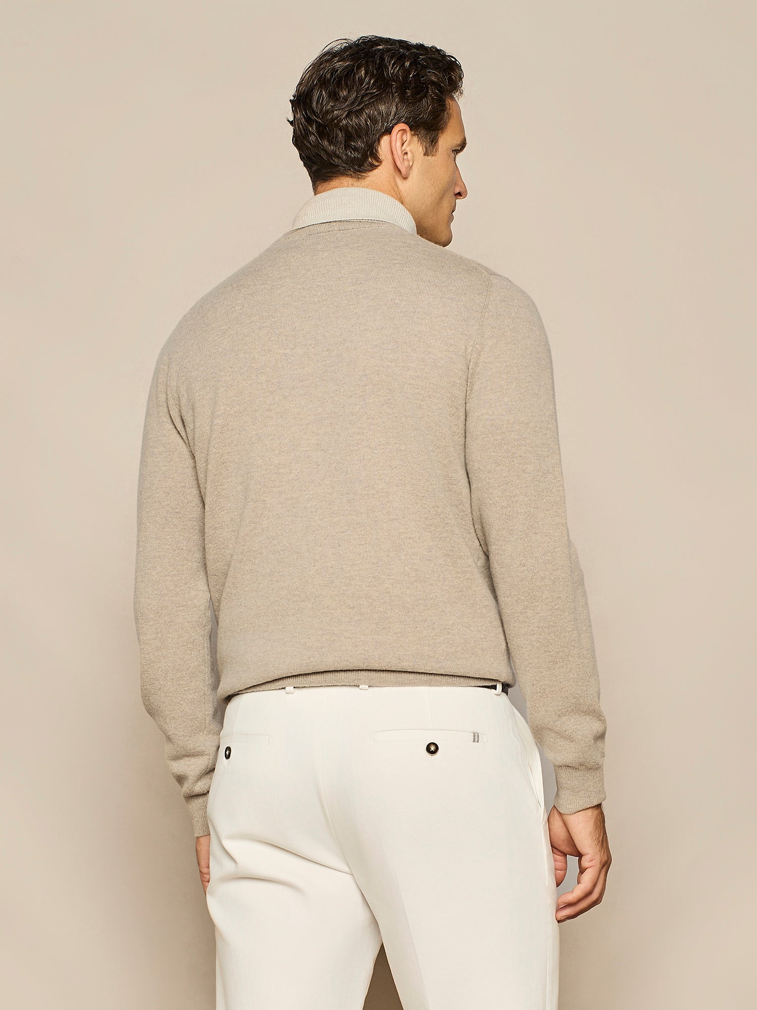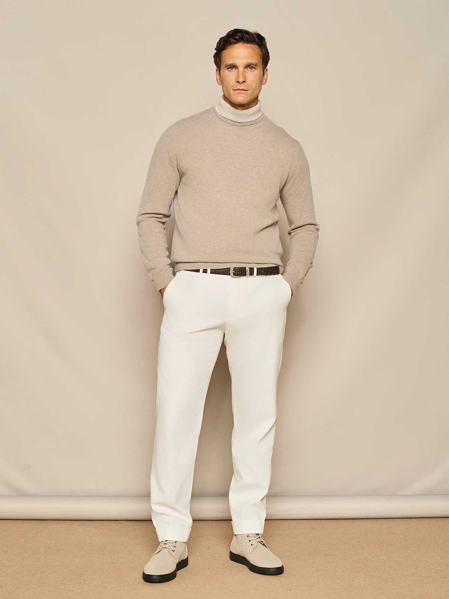 LIGHT TAUPE CASHMERE BLEND DOUBLE COLLAR TURTLENECK