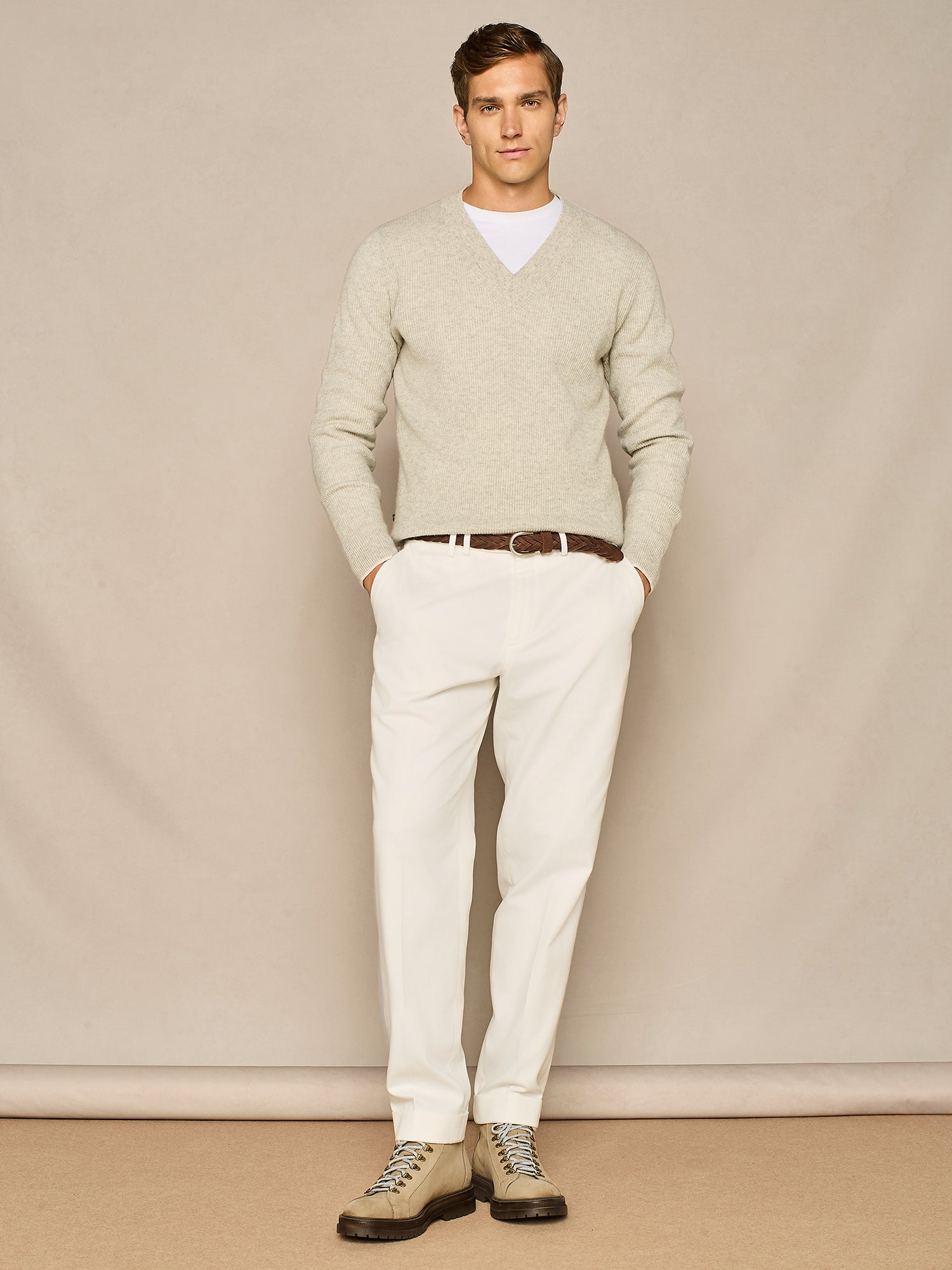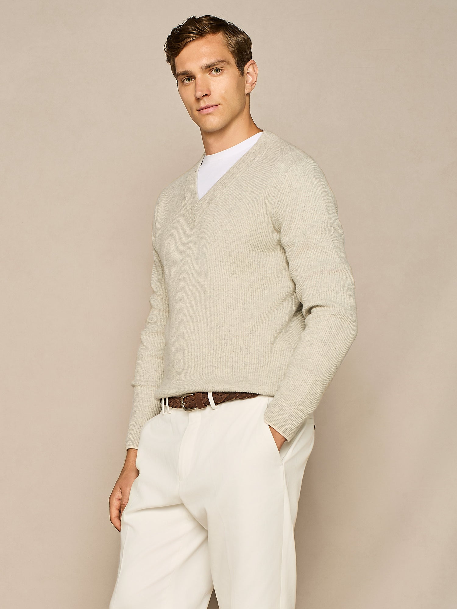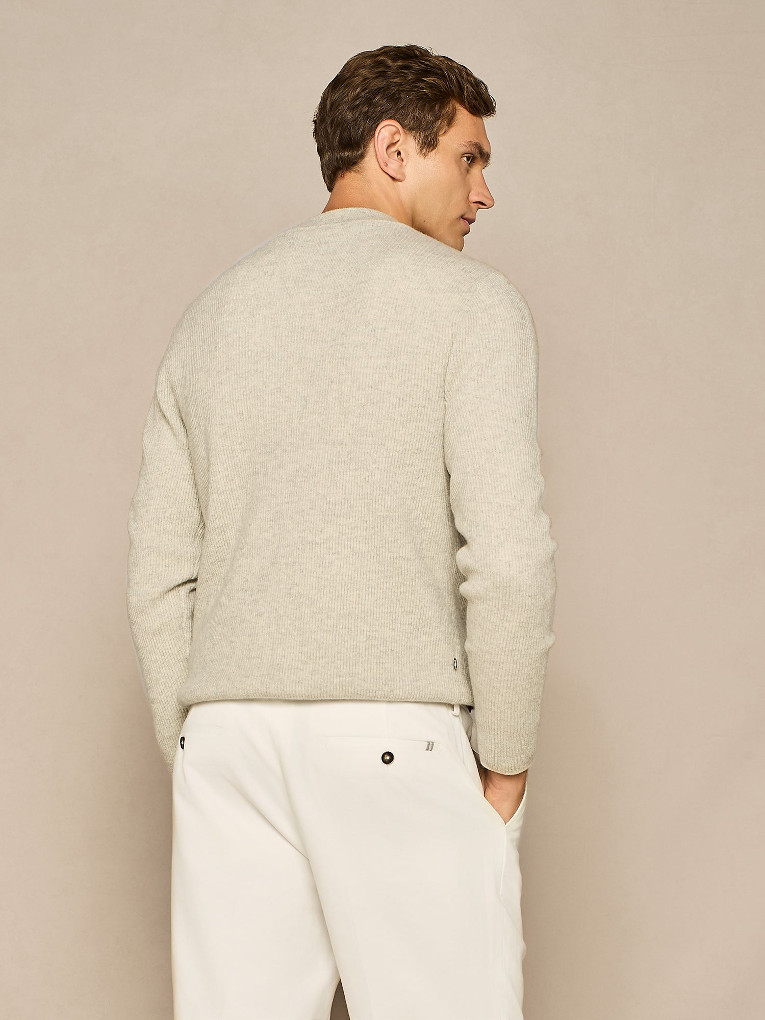 LIGHT GREY MELANGE CASHMERE BLEND FULL CARDIGAN STITCHING SWEATER