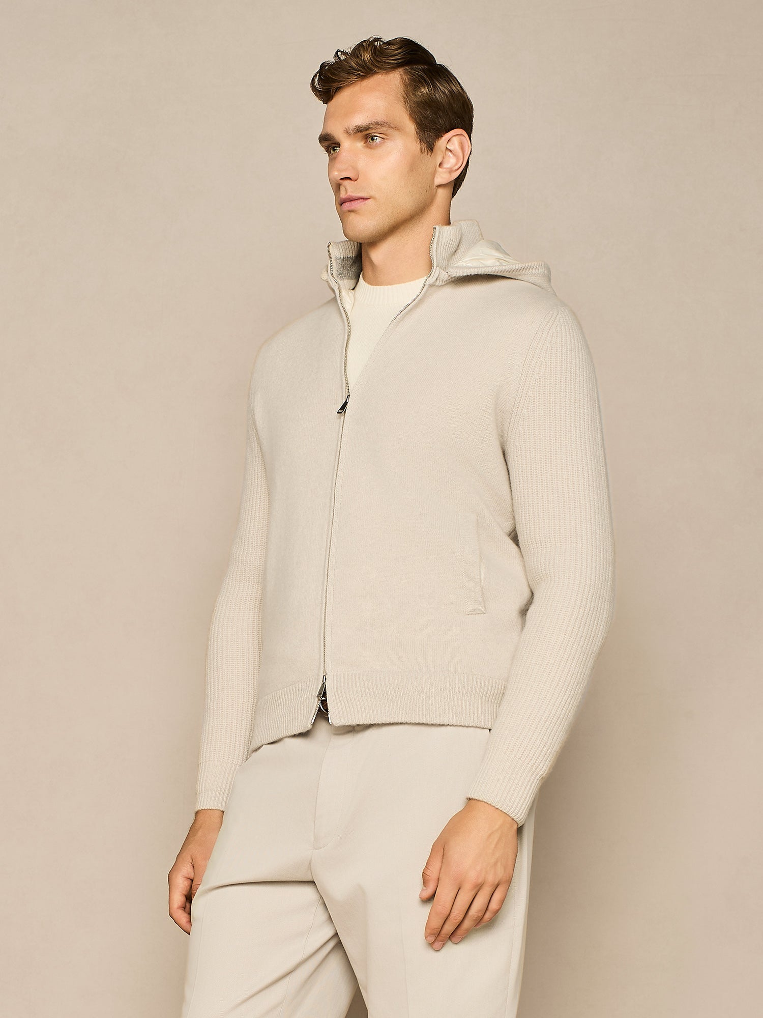 BUTTER ZIPPED SWEATER WITH DETATCHABLE HOOD