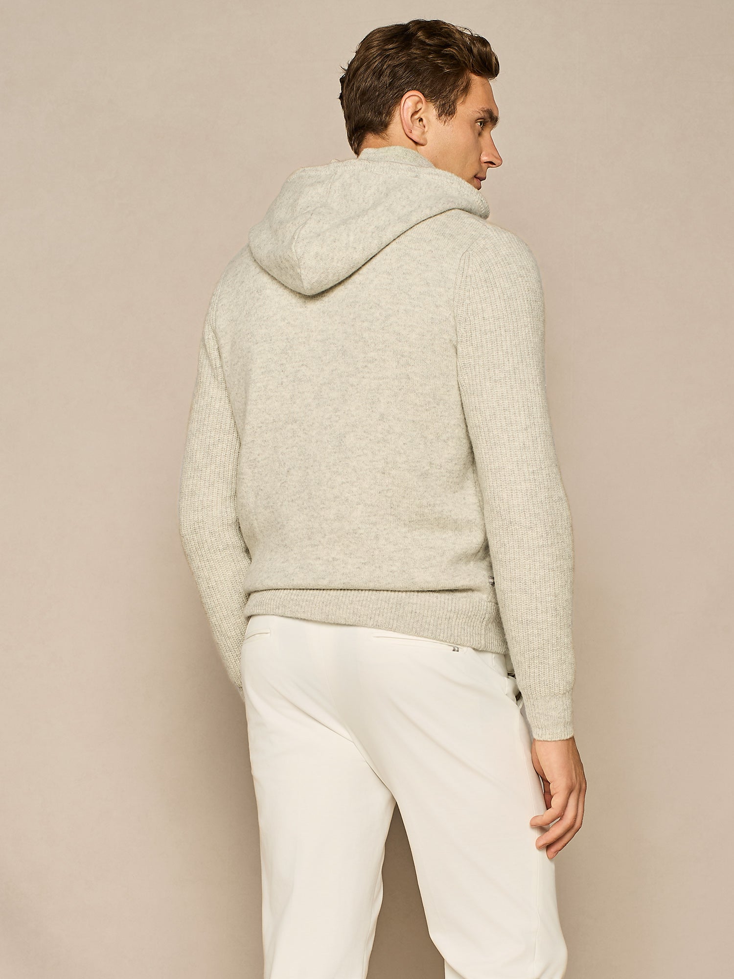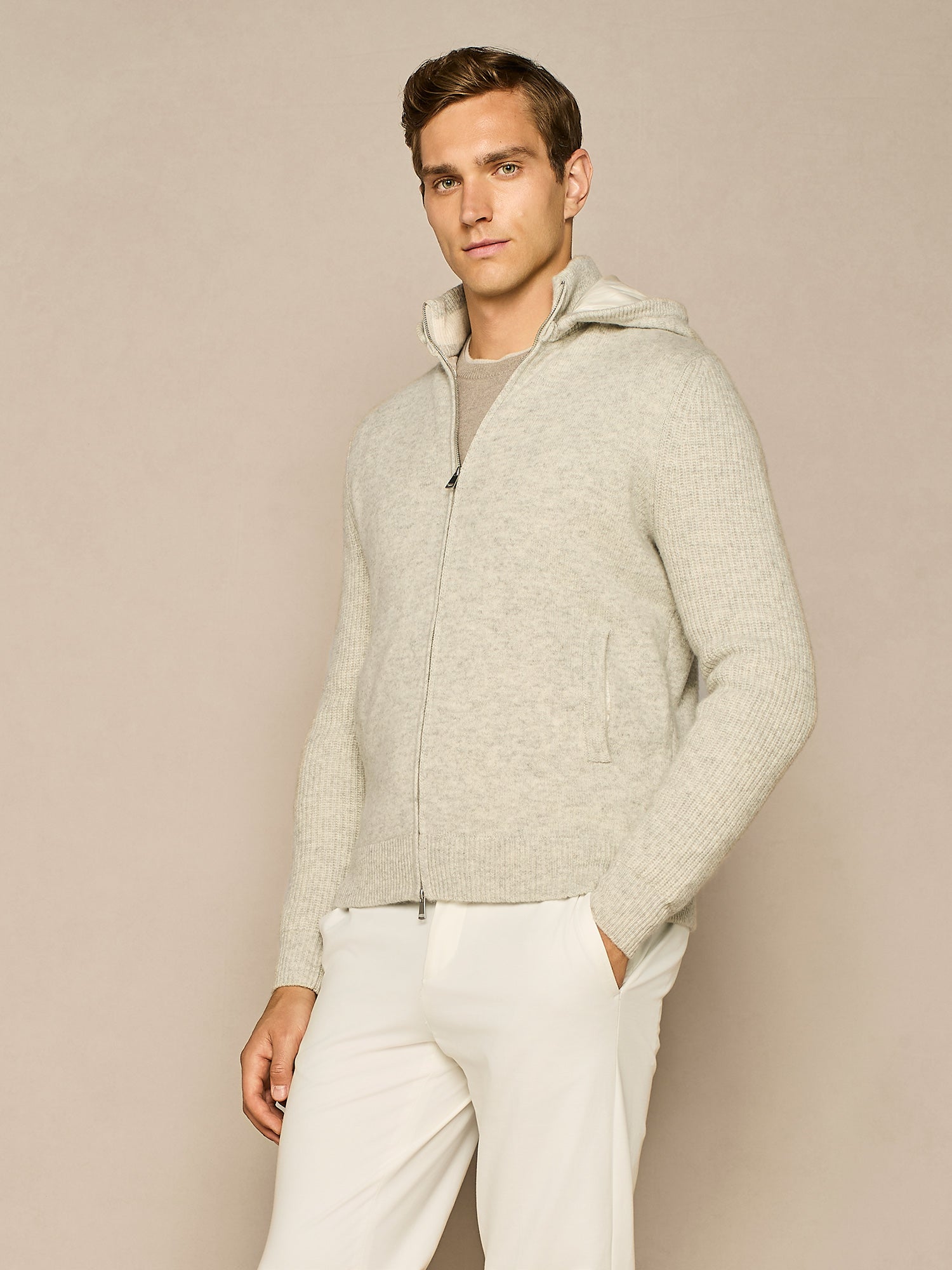 LIGHT GREY MELANGE ZIPPED SWEATER WITH DETATCHABLE HOOD