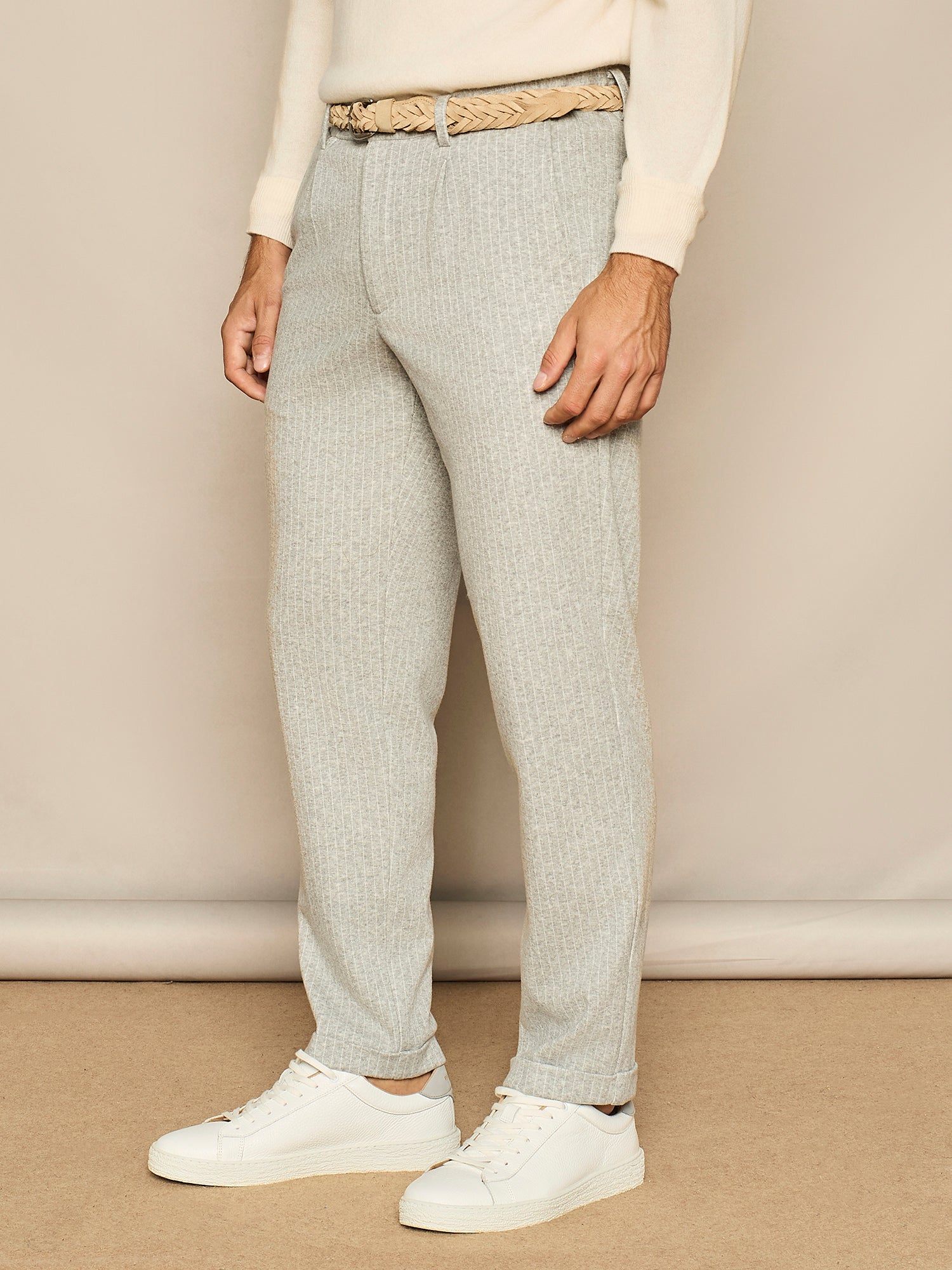 LIGHT GREY PINSTRIPED LACE-UP JERSEY TROUSER