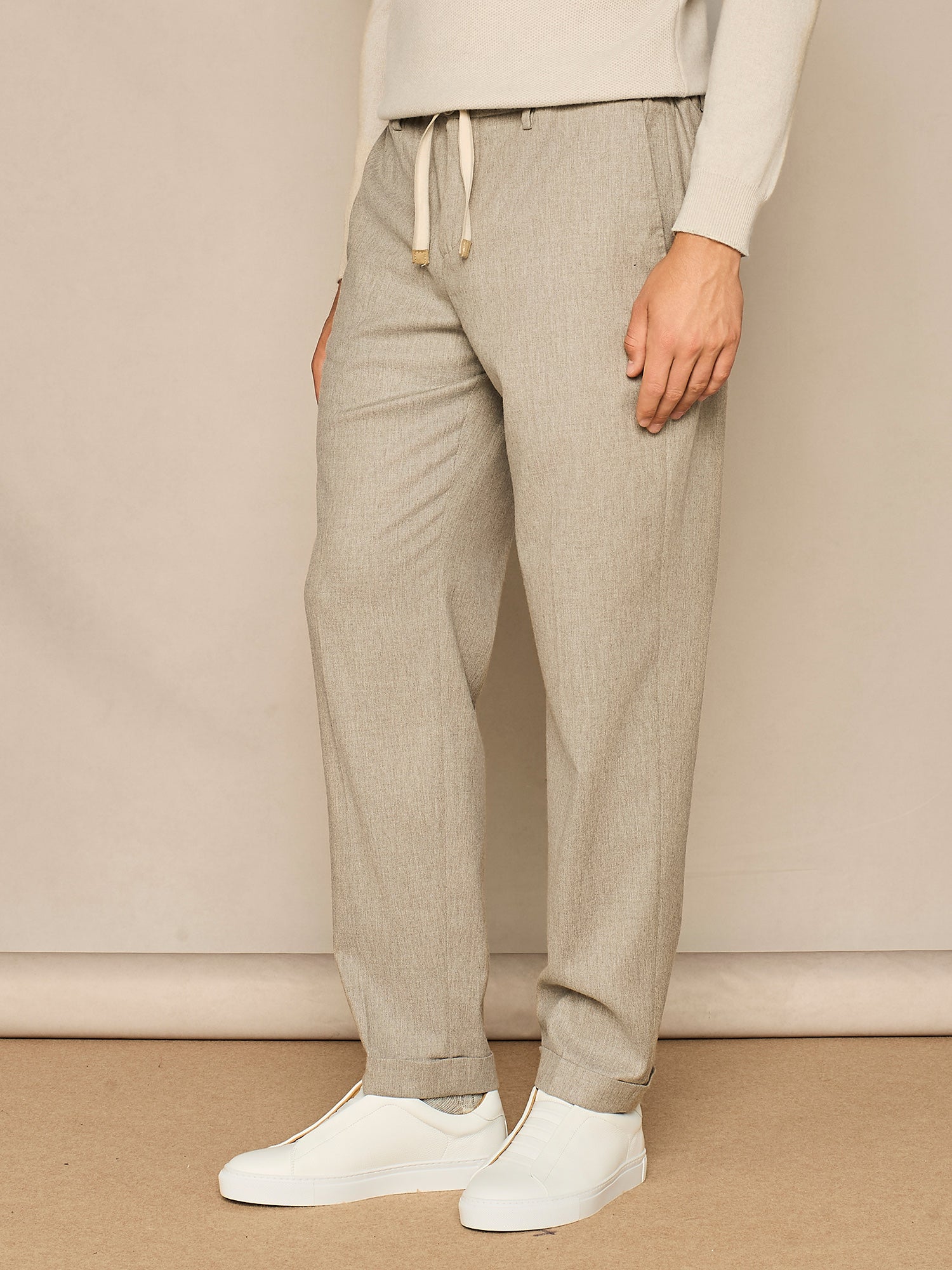 BEIGE WIDE FIT LACE-UP TROUSER IN LIGHT FLANNEL FABRIC