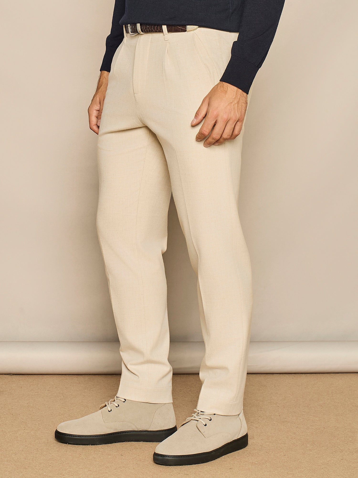 BEIGE LIGHT FLANNEL LEISURE FIT TROUSER