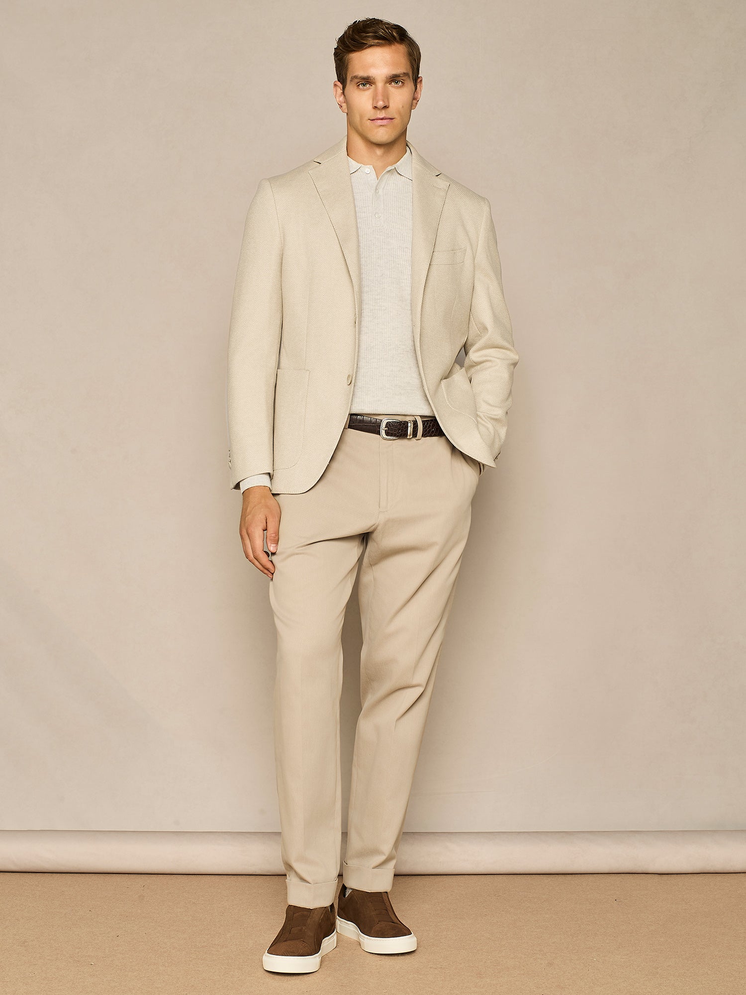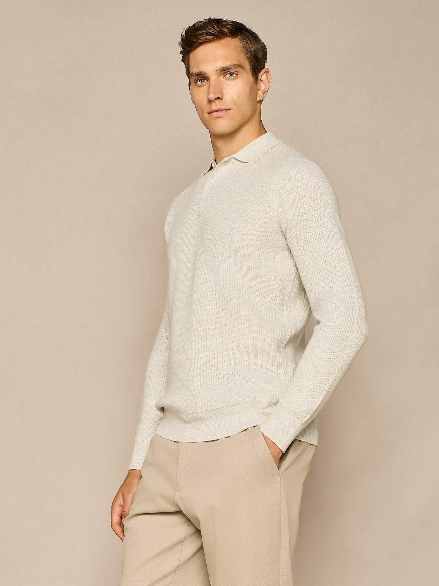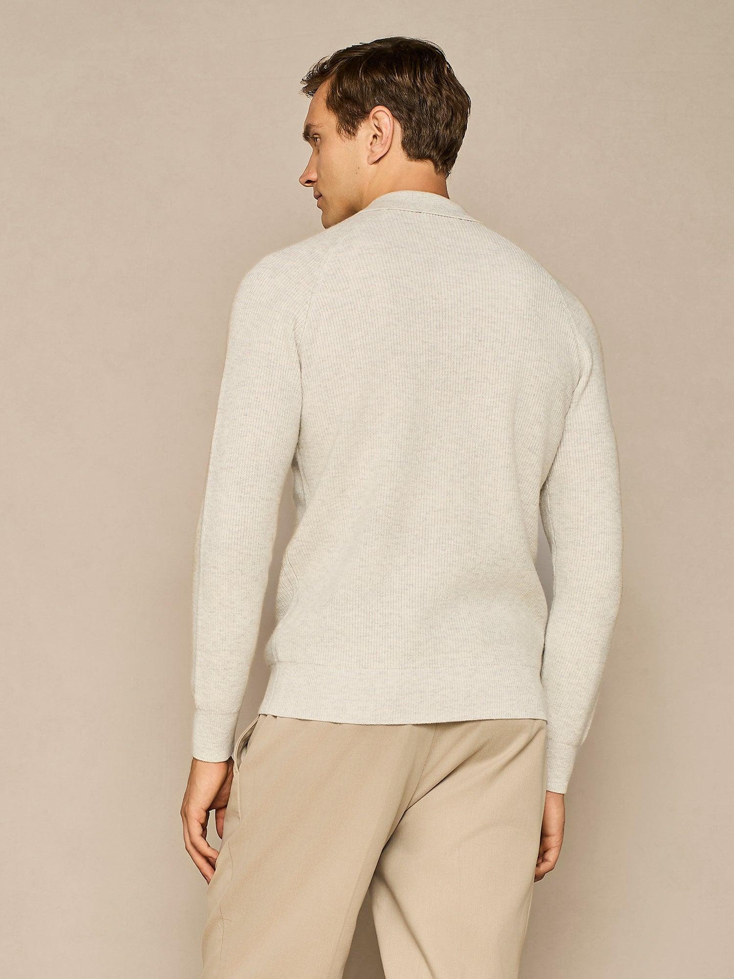 LIGHT GREY MELANGE WOOL BLEND HALF CARDIGAN POLO