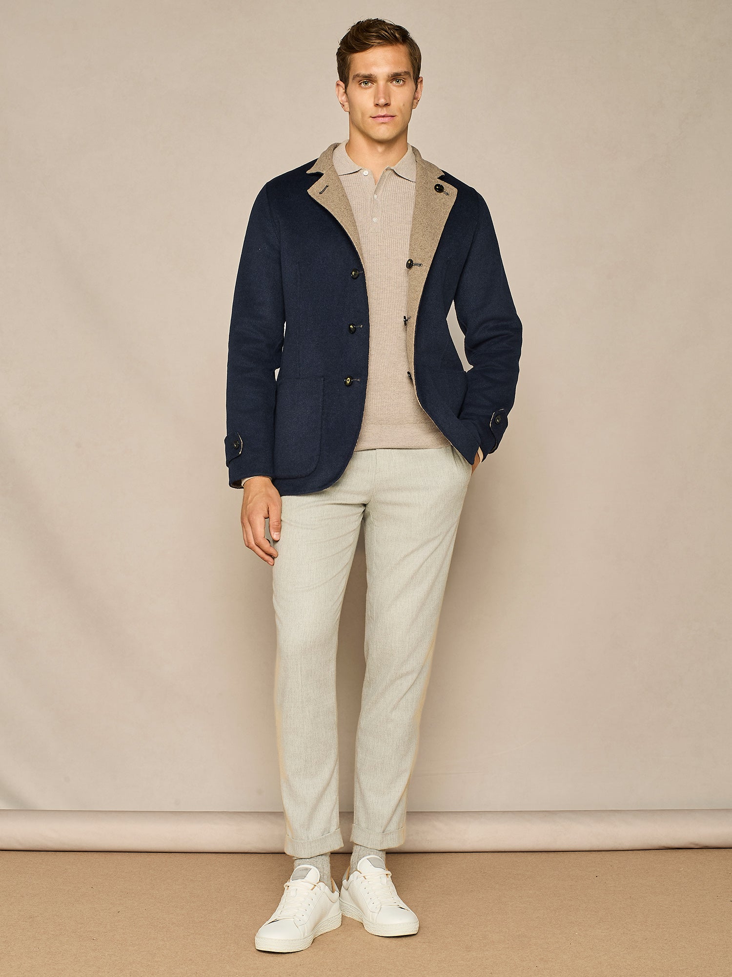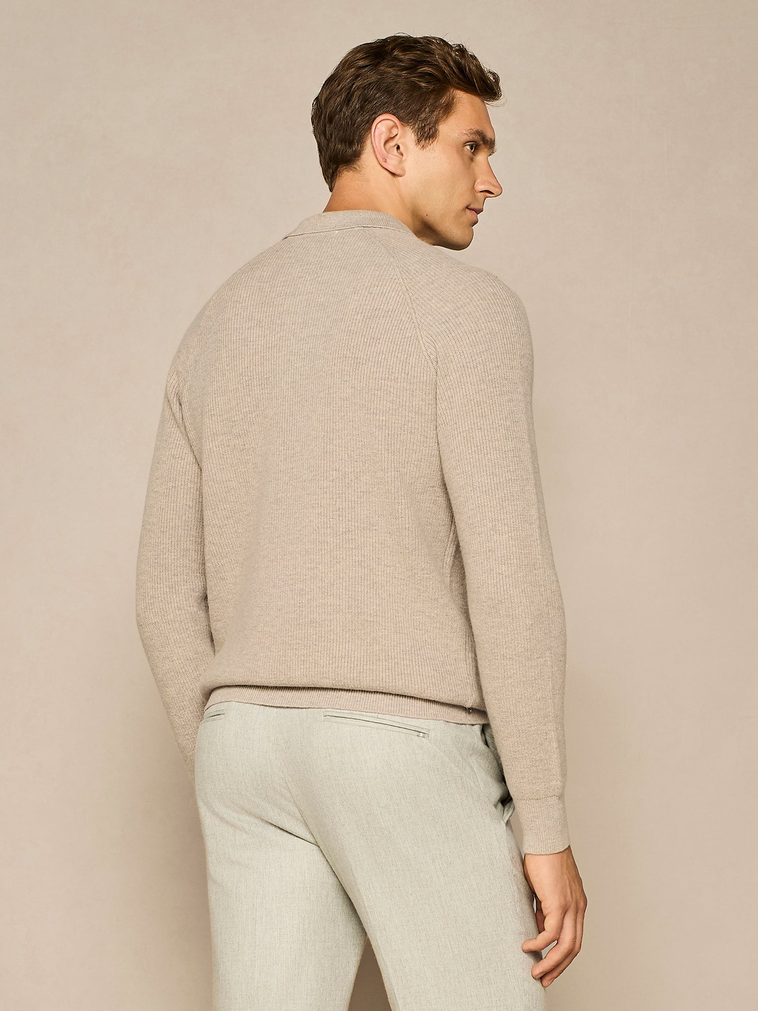 TAUPE WOOL BLEND HALF CARDIGAN POLO
