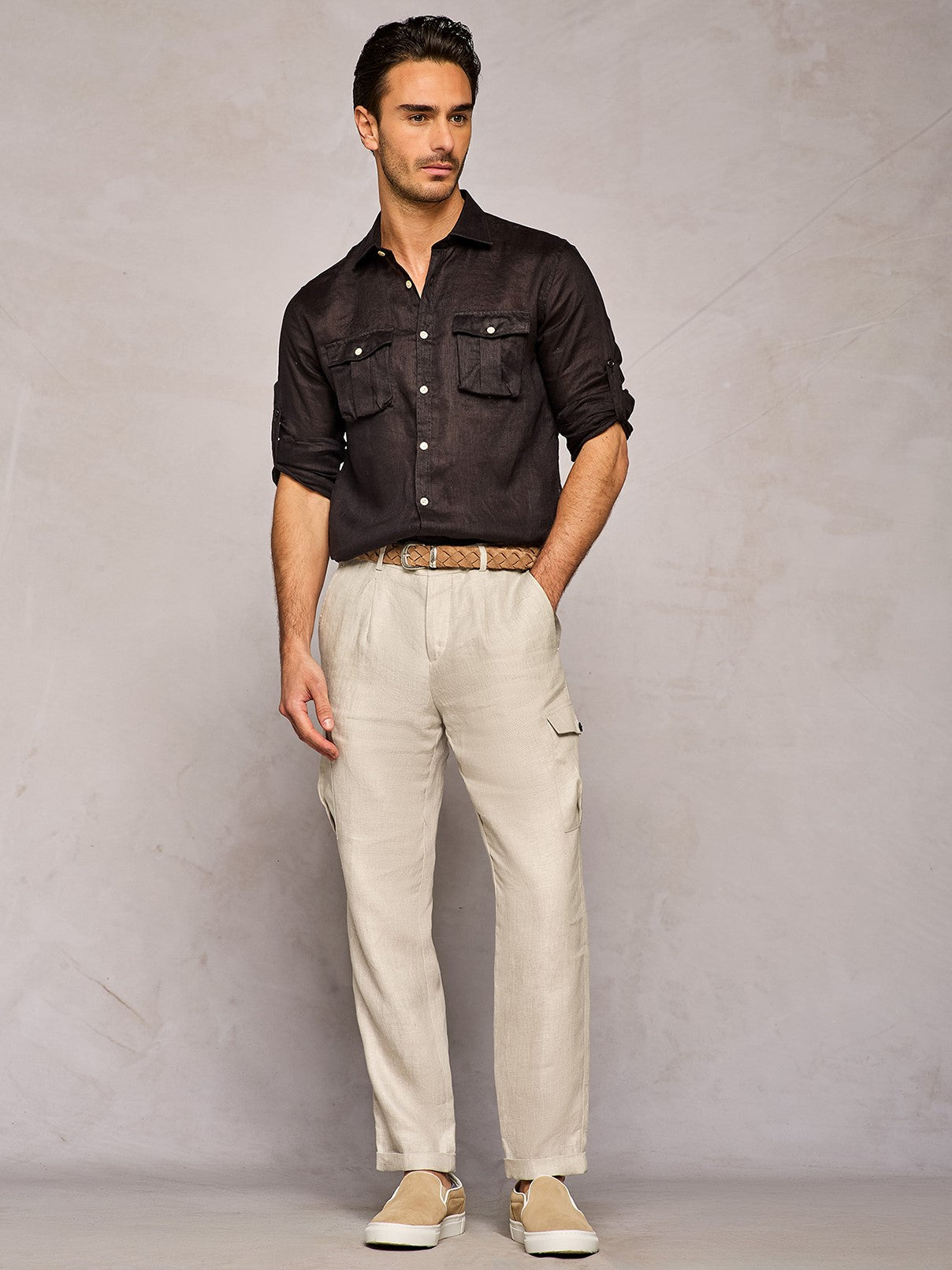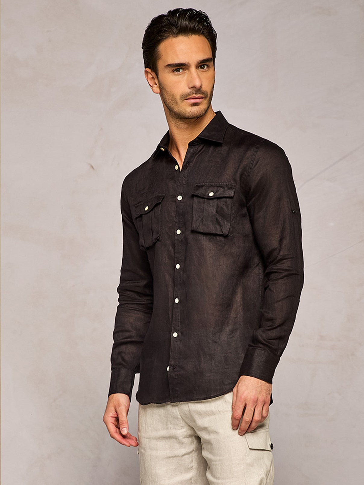 BLACK SAFARI LINEN SHIRT