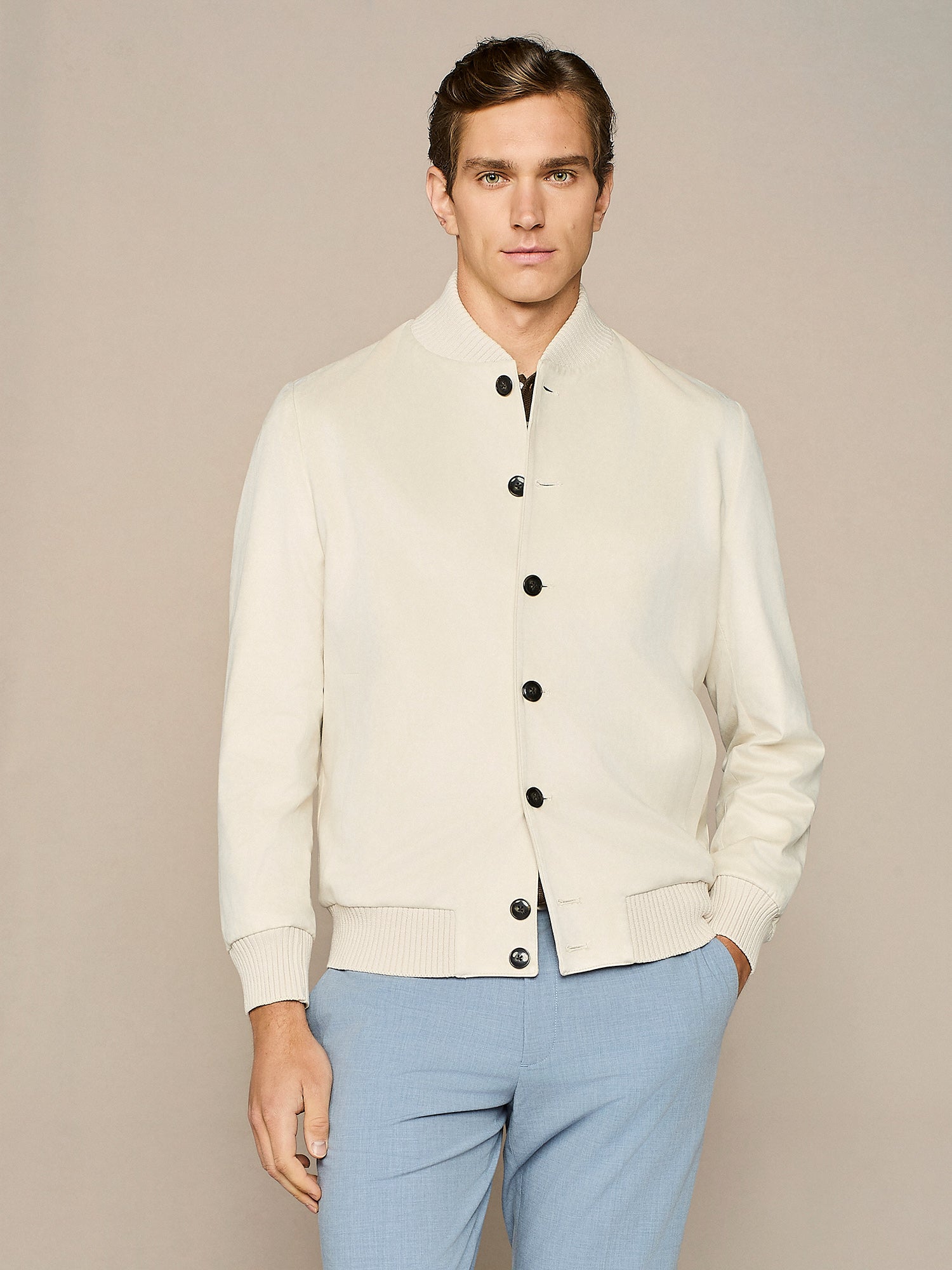 BEIGE ECO SUEDE BOMBER