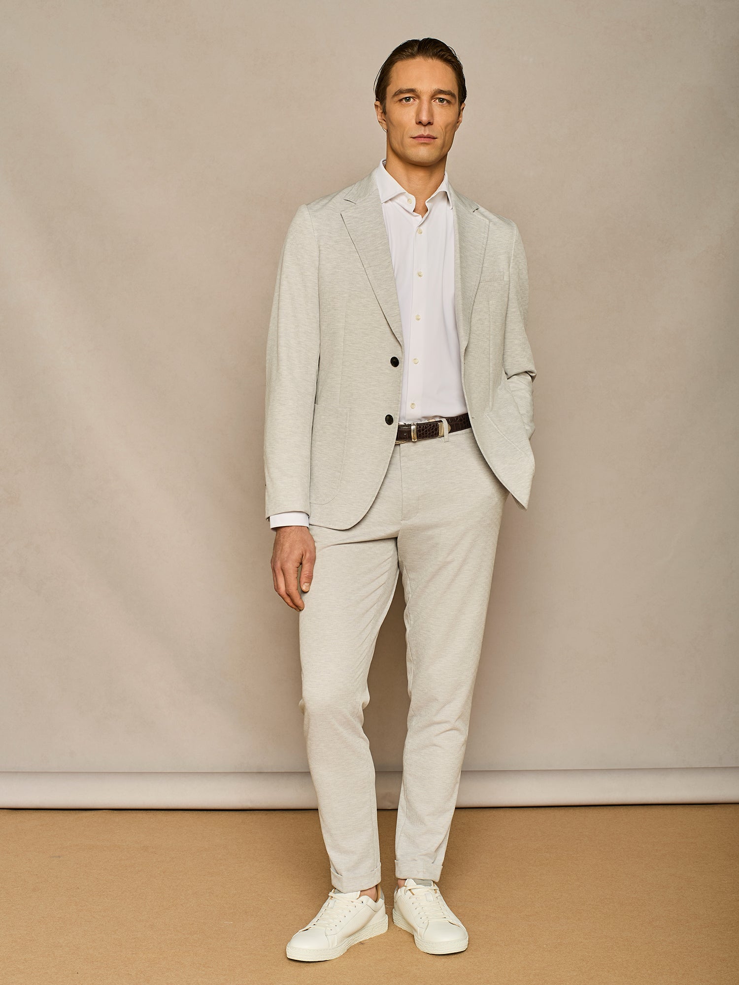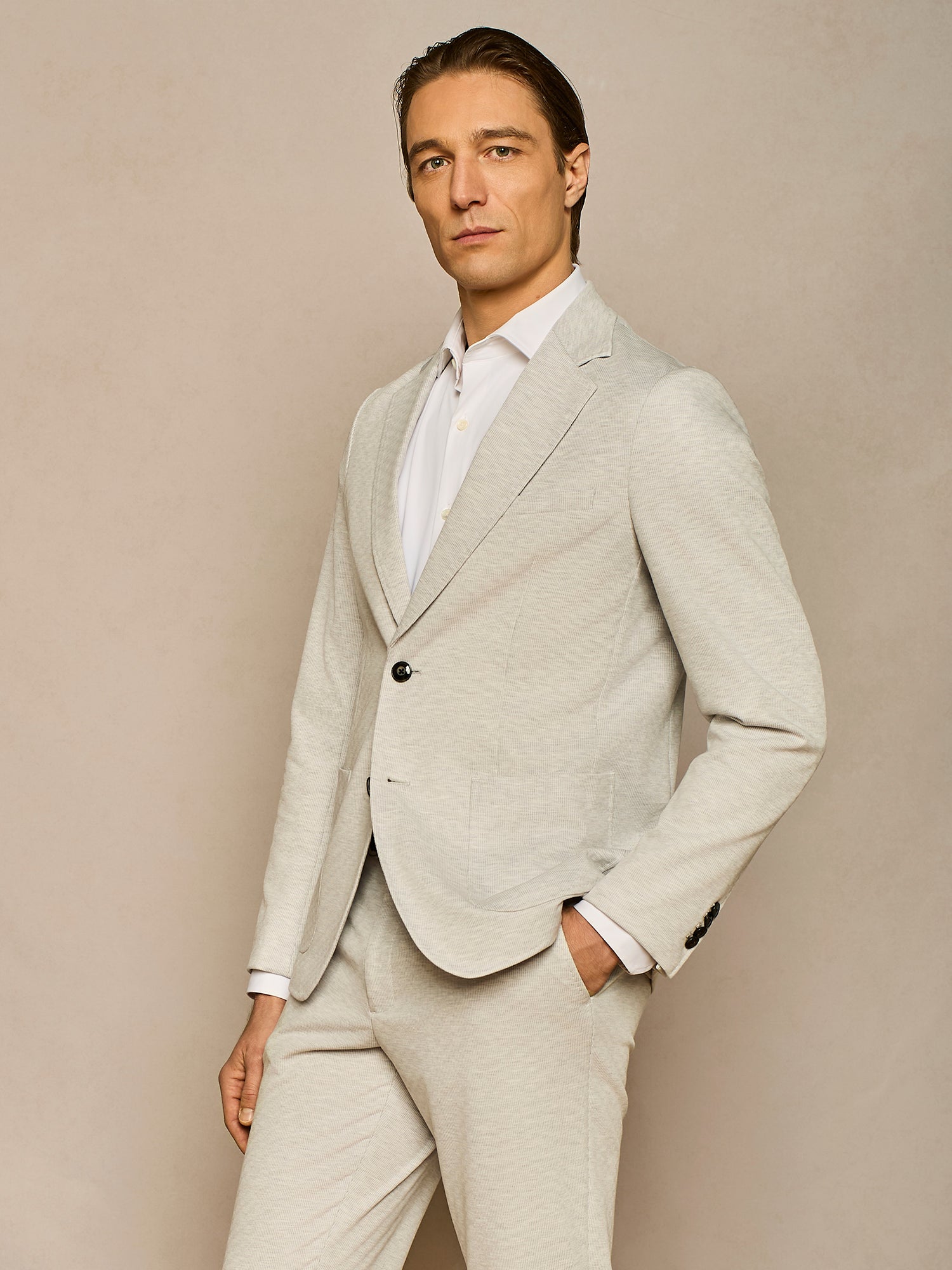 LIGHT GREY PINSTRIPED JERSEY JACKET