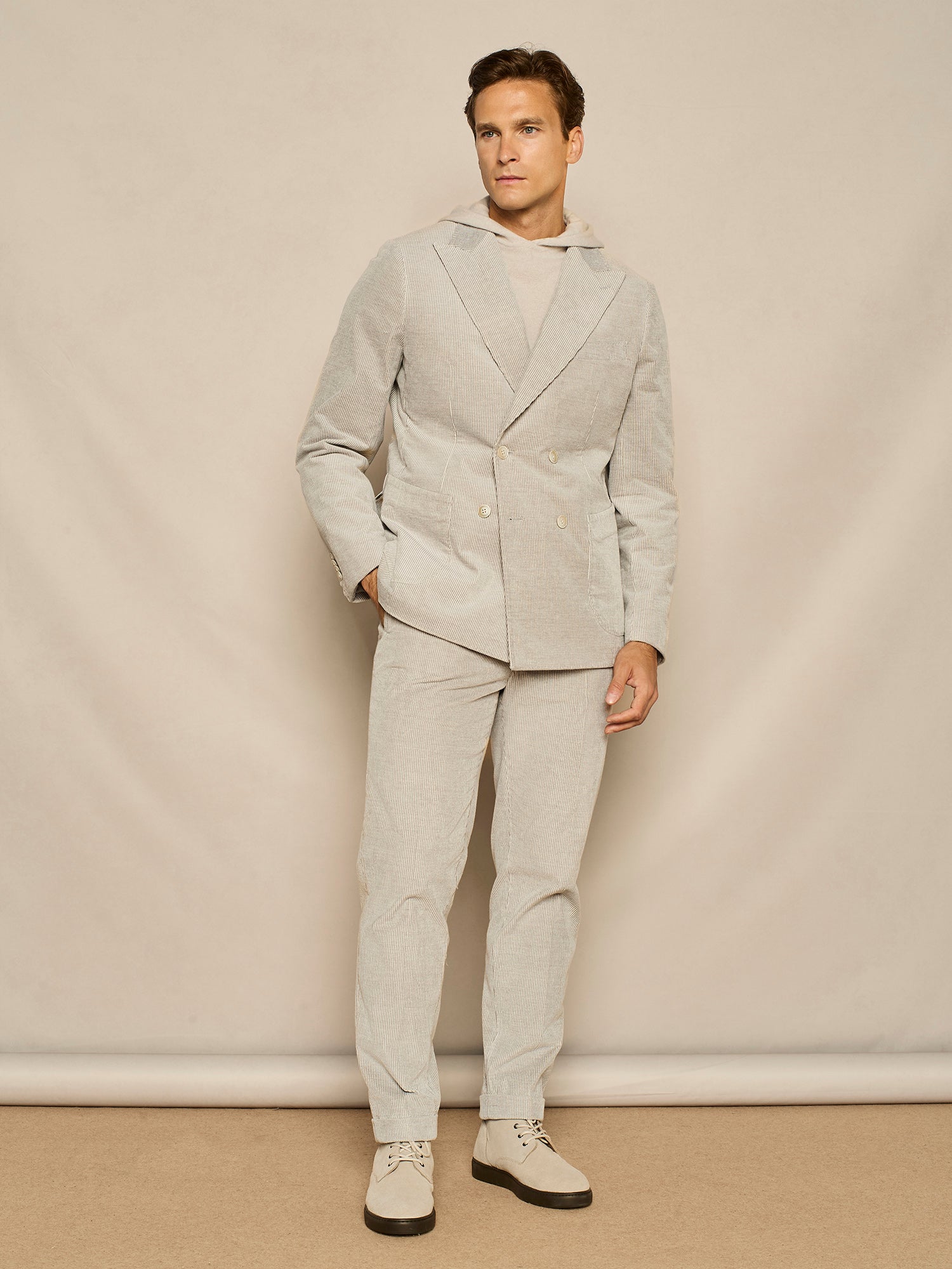 PANTALONE WIDE FIT IN VELLUTO VANISE' GRIGIO CHIARO