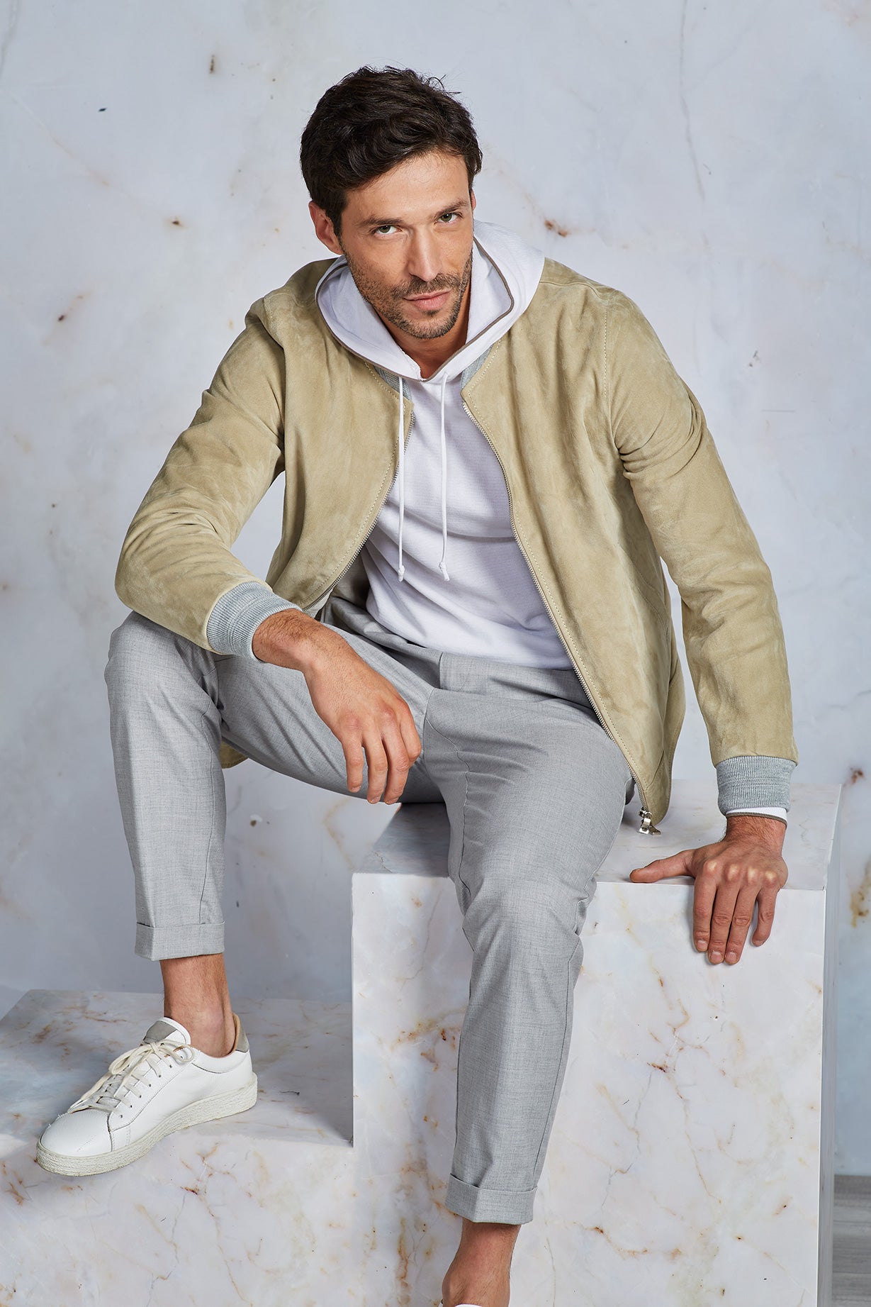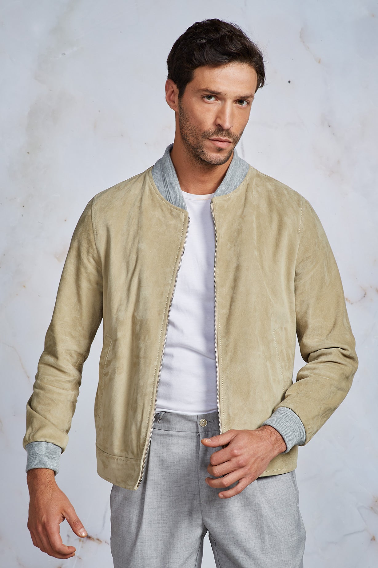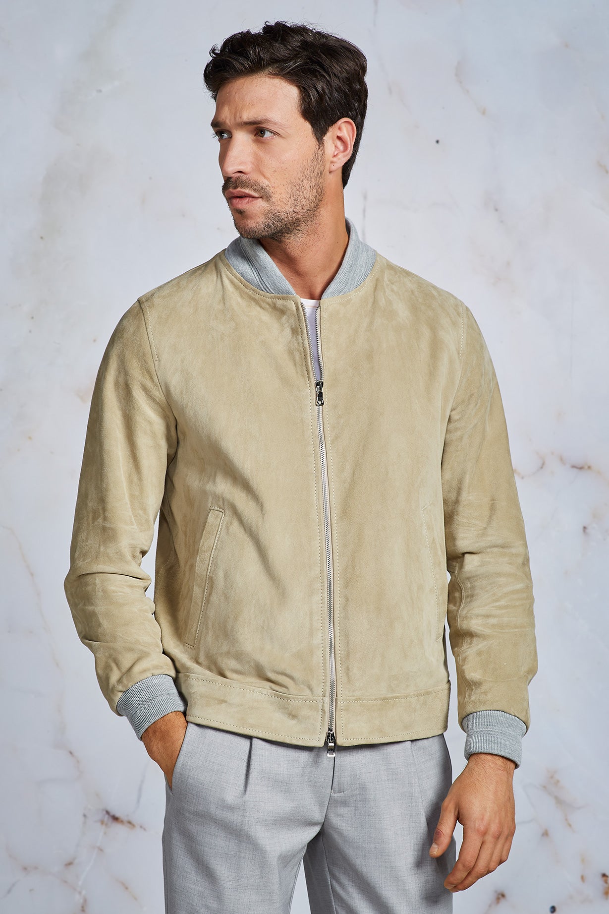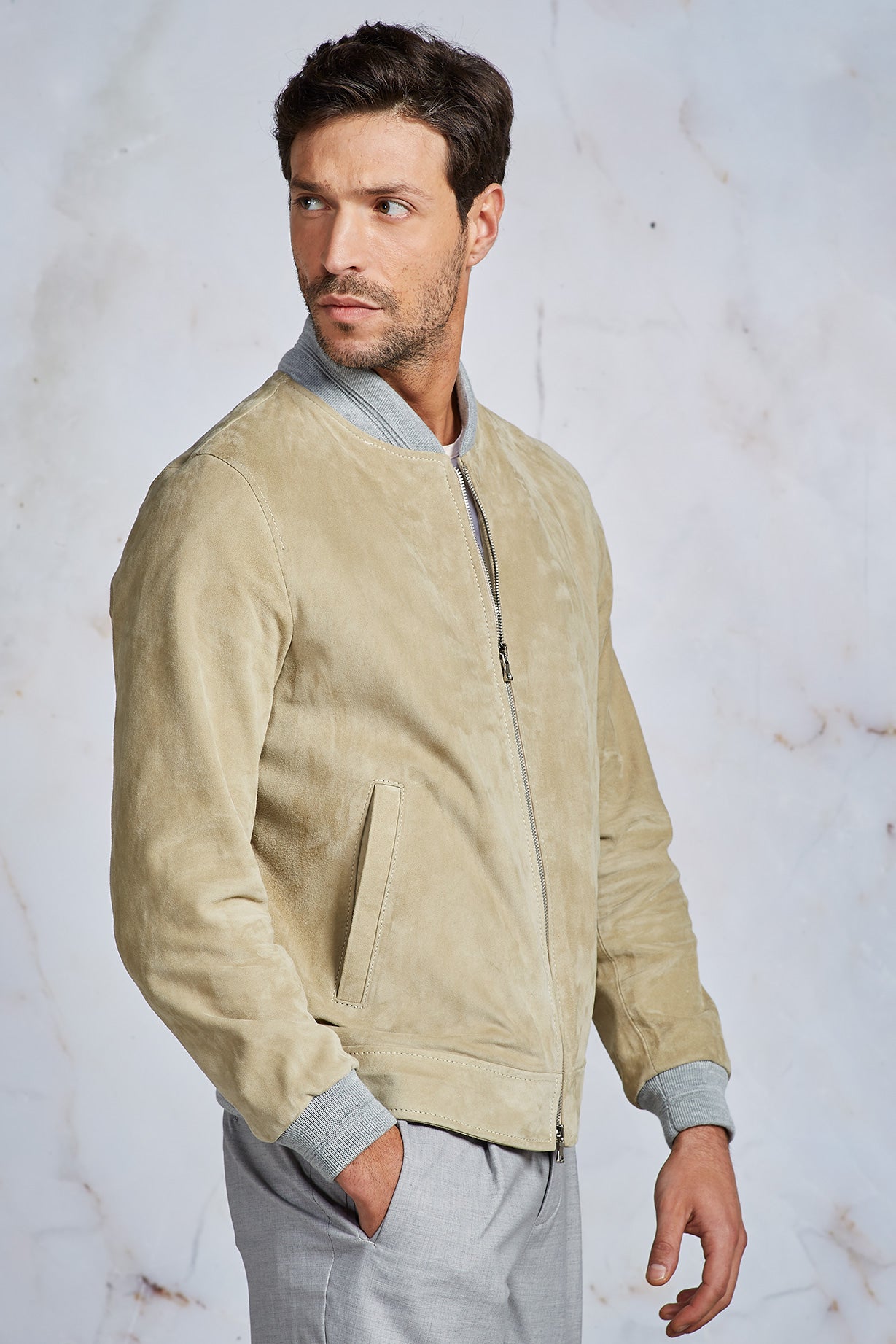 BOMBER IN CAMOSCIO BEIGE